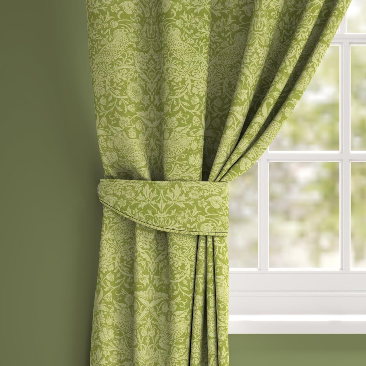 Perhaps William Morris’s most recognisable design, Strawberry Thief Tonal design was inspired by the thrushes that crept under Morris’s strawberry nets in his garden at Kelmscott Manor, Oxfordshire. The original pattern took several days to print using hand-carved woodblocks to build up the different colours, and ‘Strawberry Thief’ was consequently one of Morris’s firm’s most expensive cottons. Whilst waiting to see the first piece printed, Morris endured sleepless nights in his lodgings at Merton Abbey. Designed in 1883, Strawberry Thief remains one of William Morris’s most popular and iconic designs. Pairing iconic William Morris patterns with excellent British manufacturing, our Made to Order service brings you a selection of beautiful William Morris At Home designs, with exclusive colourways to Dunelm, allowing you to create a uniquely individual look in your home. Available in both a plain and piped design, this tieback can be paired with our matching Made to Measure Curtain or Roman Blinds to give your home a beautifully co-ordinated finish. Book an appointment with one of our expert consultants who will guide you through the process of creating your very own made to order tieback.