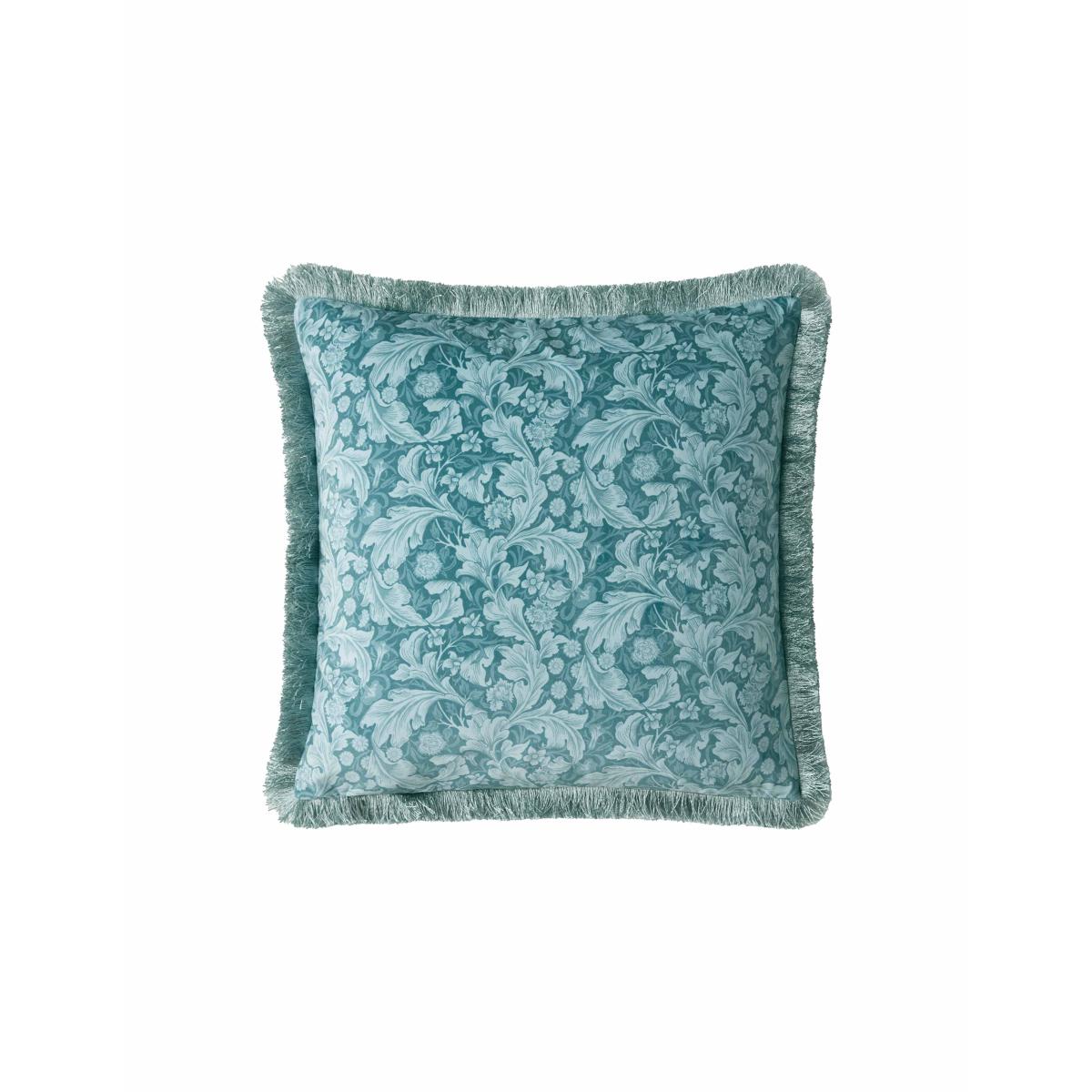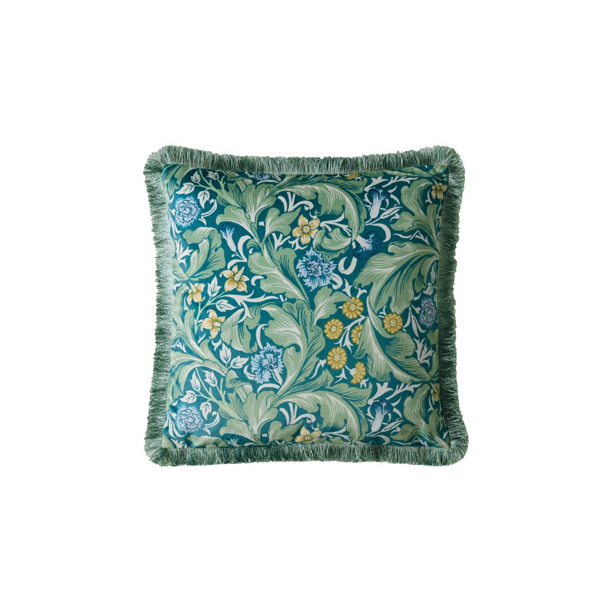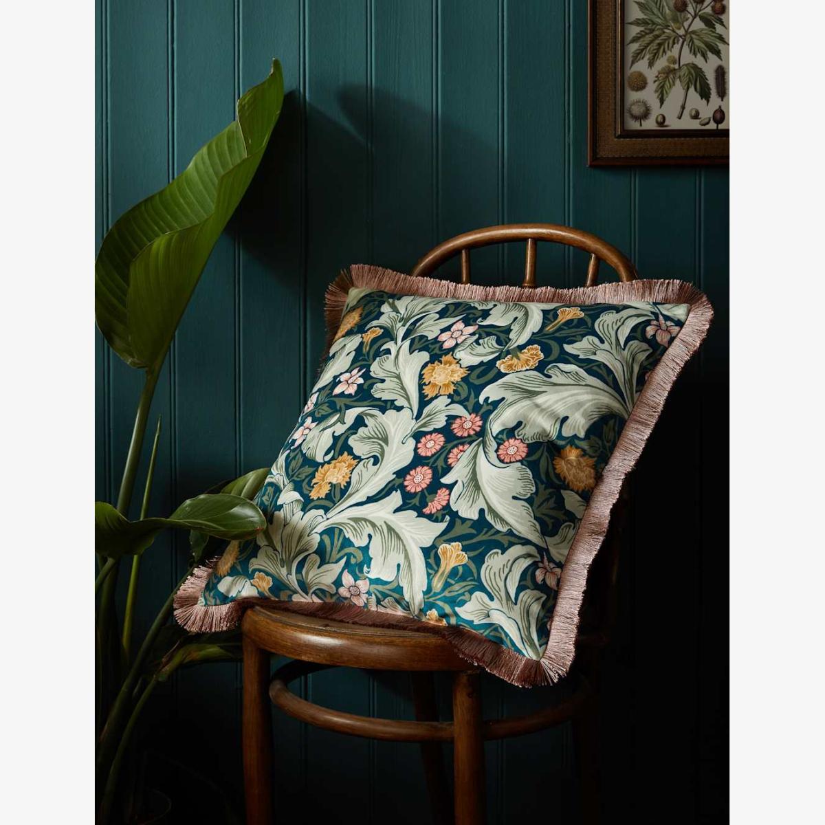 William Morris At Home Velvet Leicester Fringed Cushion Forest Green