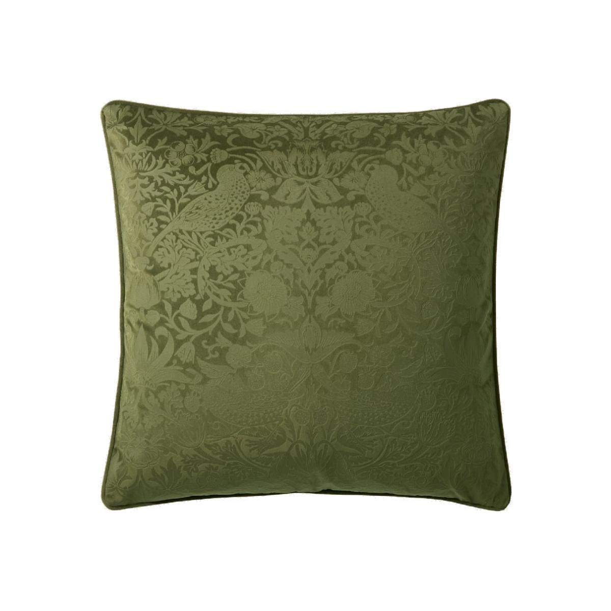 William Morris At Home Velvet Strawberry Thief Cushion Dark Olive