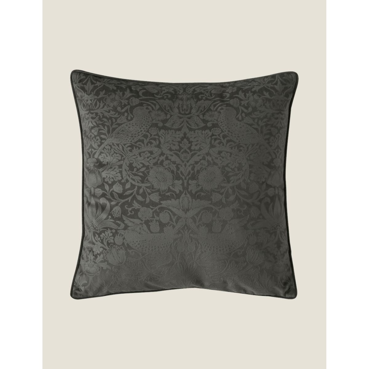 William Morris At Home Velvet Strawberry Thief Cushion - Oyster, Oyster,Rose Pink,Navy,Seafoam