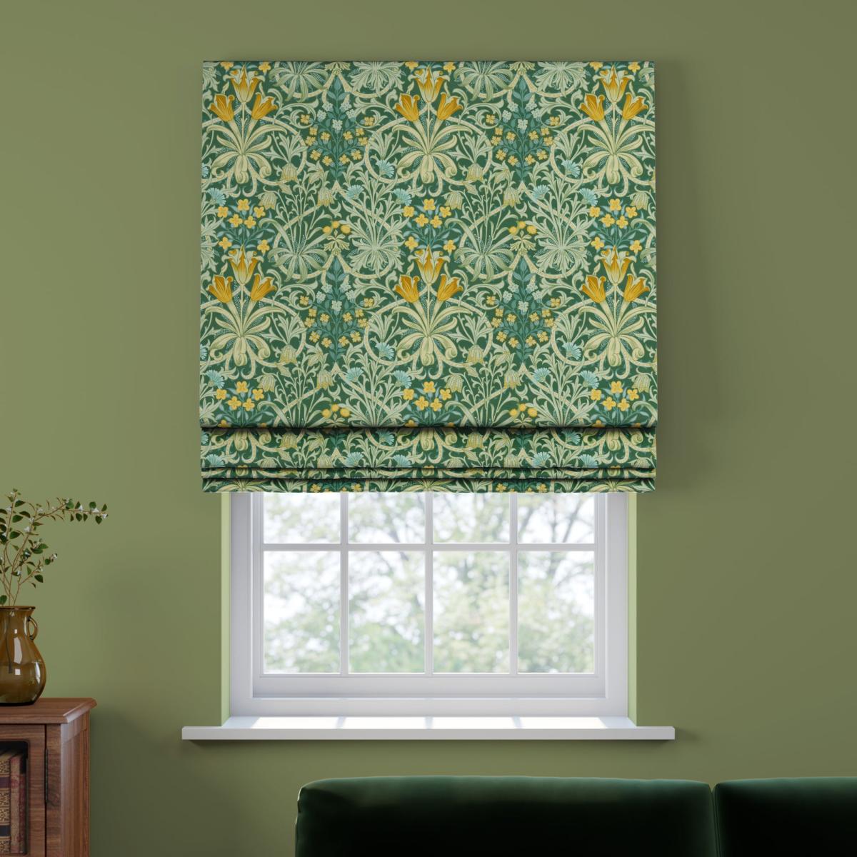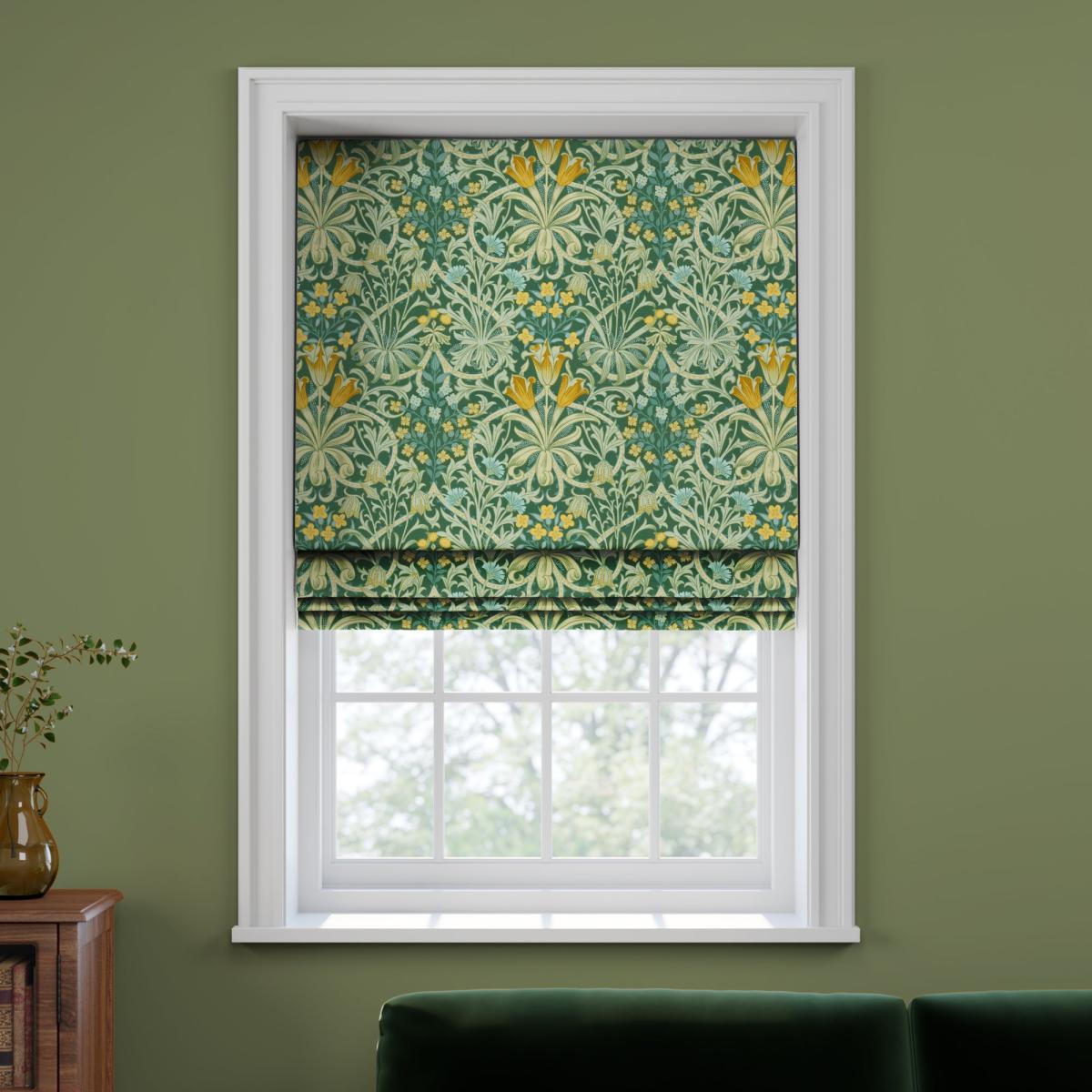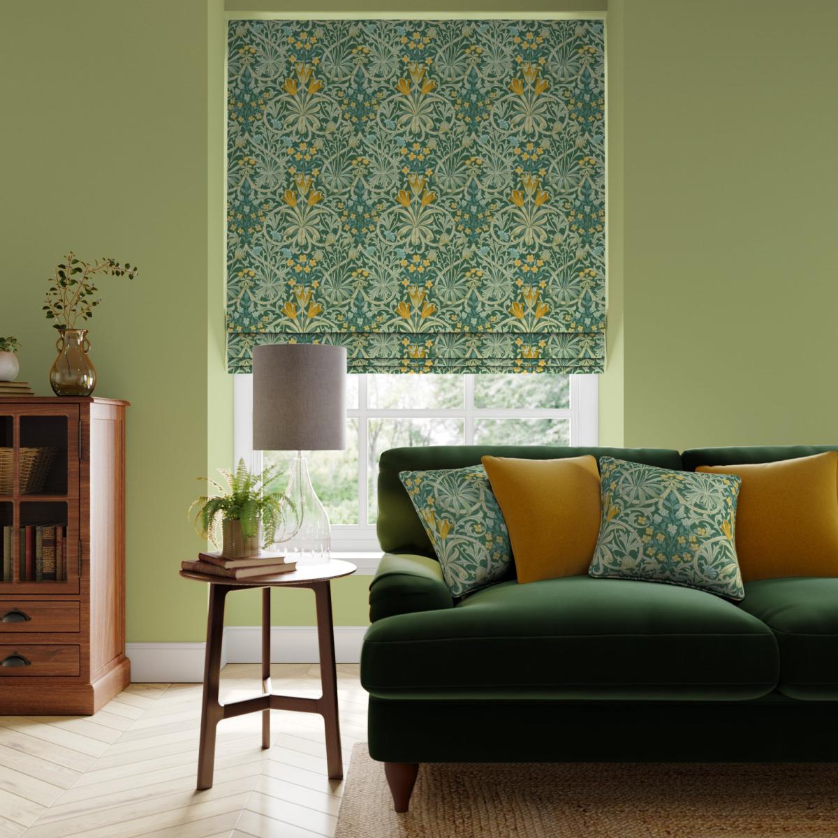 Morris championed nature, and his designs were commonly asymmetric to reflect the organic imperfections of the natural world. ‘Woodland weeds’, however, is curiously symmetrical. The design features a variety of small flowers, vines and leaves interwoven in a beautiful and detailed arrangement. This highly decorative pattern is reminiscent of medieval millefleur, an artistic method of filling the background of paintings or textiles with abundant tiny flowers, flora and fauna; a technique Morris is known to have admired. Pairing iconic William Morris patterns with excellent British manufacturing, our Made to Measure service brings you a selection of beautiful William Morris At Home designs, with exclusive colourways to Dunelm, allowing you to create a uniquely individual look in your home. Available in a range of linings, these roman blinds can be paired with matching Curtains or Made to Order Tiebacks and Cushion Covers to give your home a beautifully coordinated finish. Book an appointment with one of our expert consultants who will guide you through the process of creating your very own Made to Measure Roman Blinds.