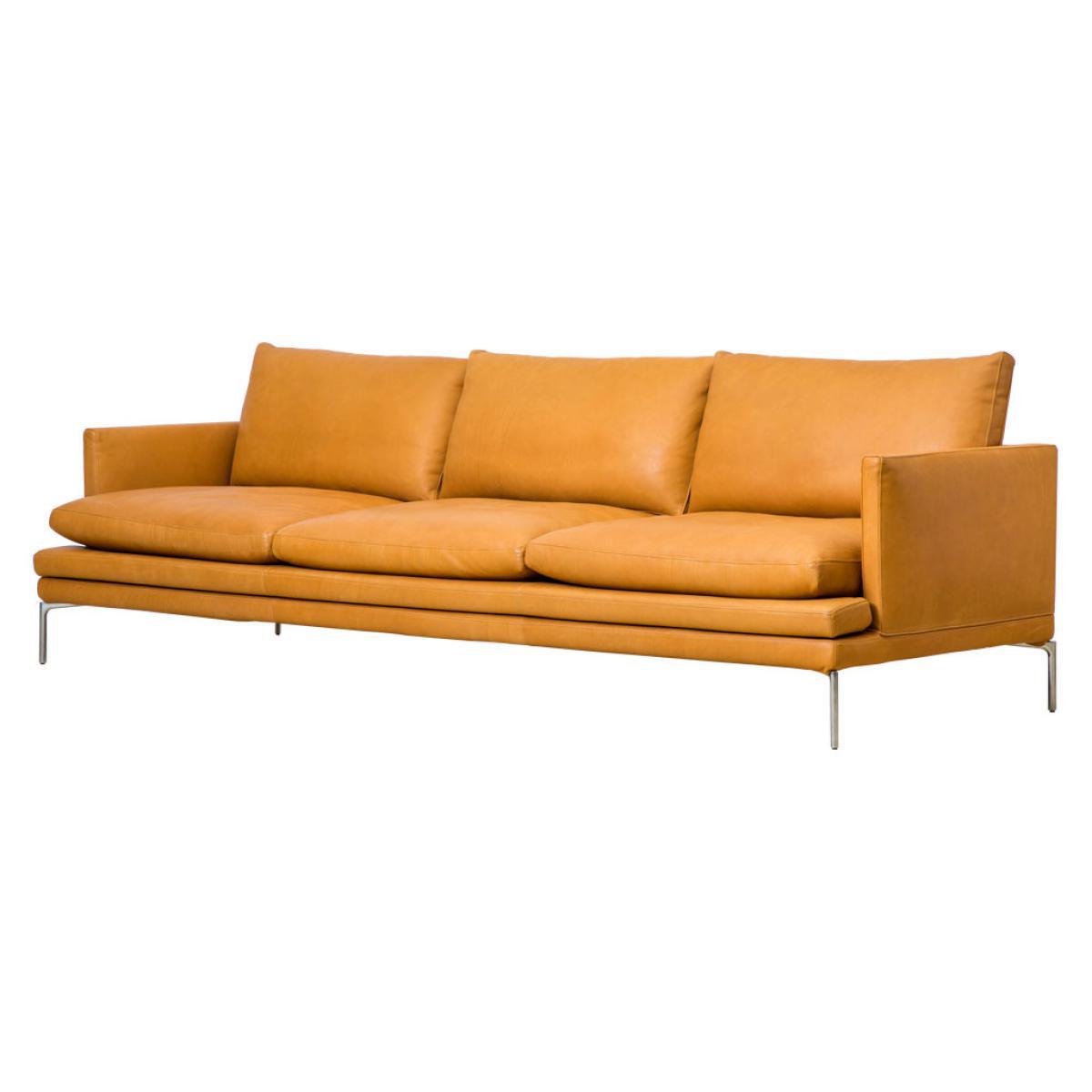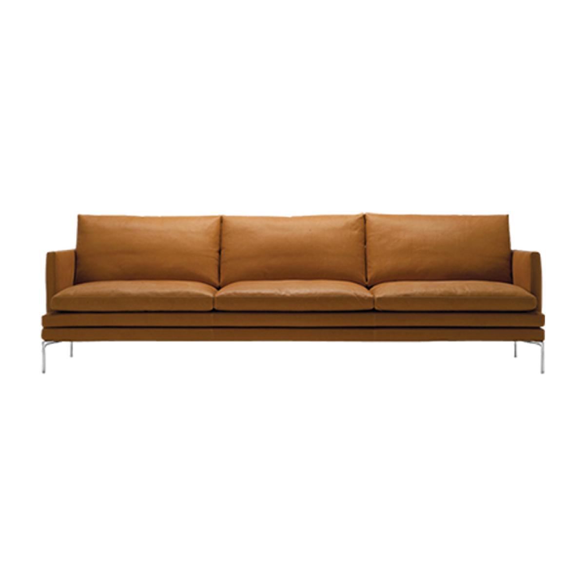 The William Sofa was designed by Damian Williamson in 2010 and has a contemporary aesthetic that could effortlessly accentuate contemporary and traditional spaces alike. Available in a selection of configurations and hues, the William Sofa 3-Seater can be upholstered and adapted to suit your setting, personal budget and specific requirements. Upholstered in a pure aniline leather, the sofa's surfaces showcase a rich grain that is dyed for colour without any pigments applied, and which will develop an elegant patina over time. The seat and back cushions are filled with luxurious goose down for enhanced comfort, while its polished aluminium alloy feet give it a stylish, contemporary appearance. The William leather sofa is the perfect choice for lending an understated statement of style to your space. Should you wish to discuss pricing, upholstery or configuration options for the William Sofa, email orders@conran.com, call 020 7589 7401 and choose extension 1, or alternatively, speak to a member of staff in one of our London stores