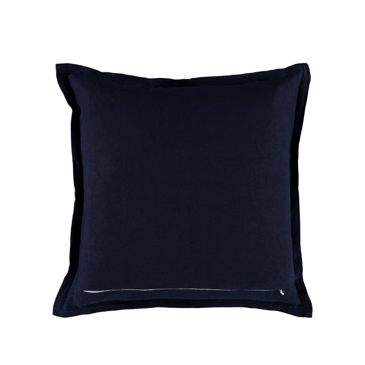 Richly coloured embroidered yarns all but cover this Suzani inspired linen cushion. Finished with a smart Indigo trimmed border and reverse. Supplied with its feather insert pad.