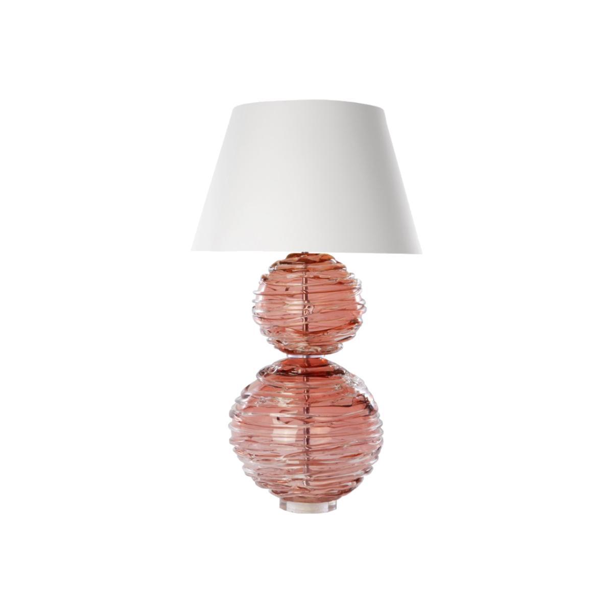 Of all our crystal lamps, indeed of anything we have designed at William Yeoward, ’The Alfie’ is without doubt our most iconic. A chic and contemporary crystal lamp made from mouth blown globes that are then drizzled with clear crystal to ensure that no two are the same. Hand produced here in the UK by skilled artisans,' The Alfie' is available in a range of beautiful jewel like colours to add personality to any interior. For Spring/Summer 2021 we have a stunning new jade colour way. Our Crystal lamps do not include lampshades as standard. We do however stock three styles of shade in four luxurious silk colours and four smart linen options, available for you to order to suit your choice of lamp and interior. All measurements are taken from base of the lamp to base of shade carrier. Our art glass is handmade in Great Britain, if your chosen style is not in stock it will be made especially for you in 4 - 6 weeks.