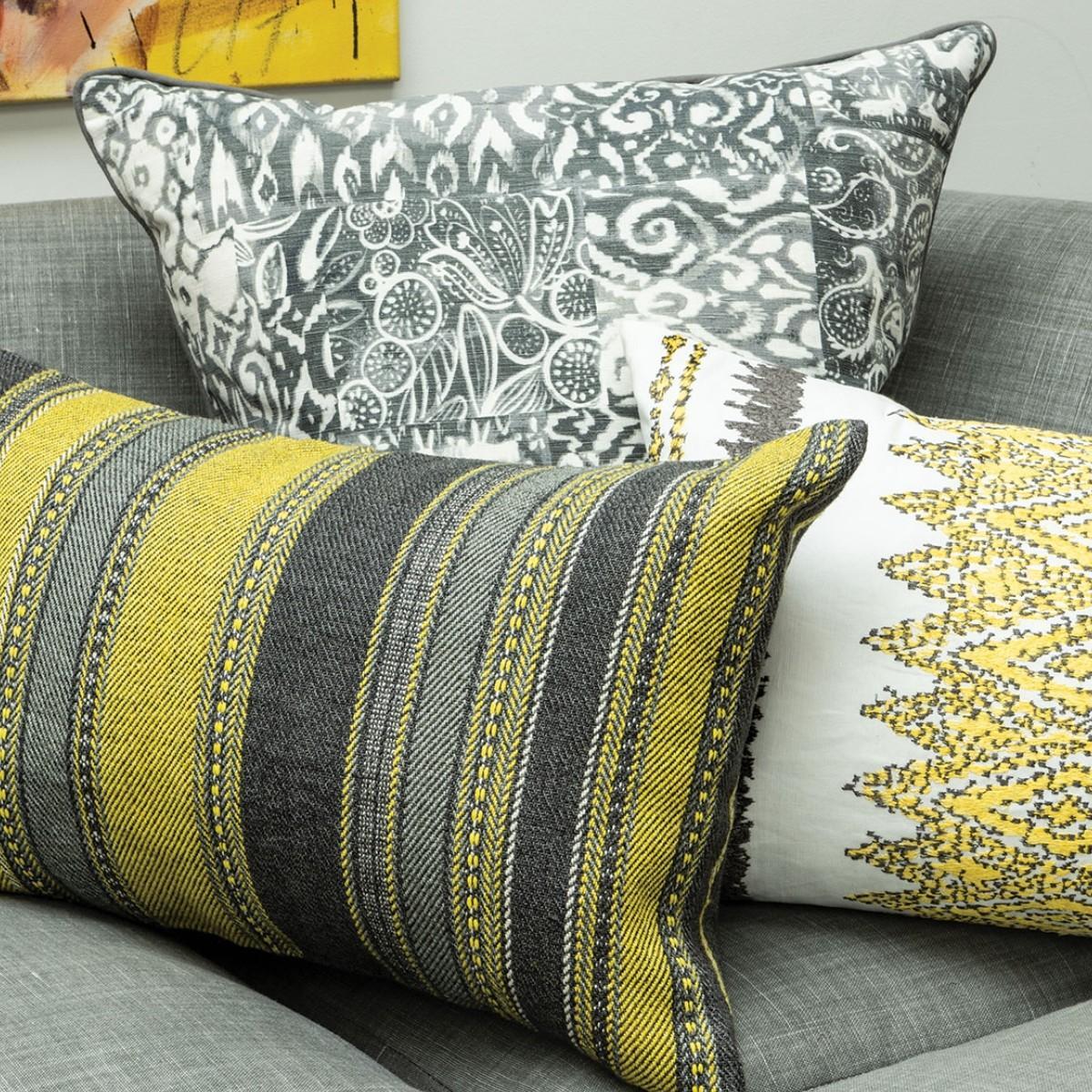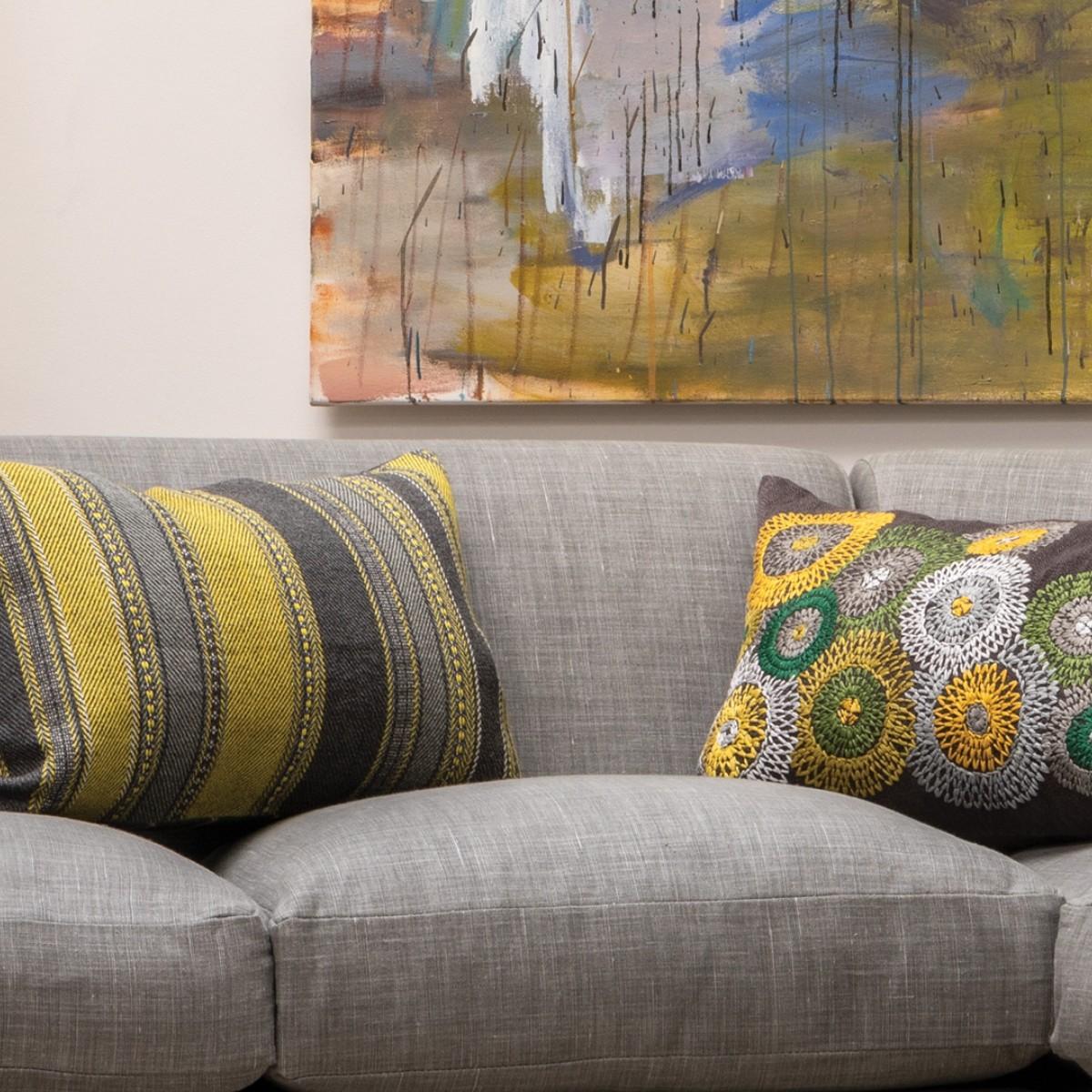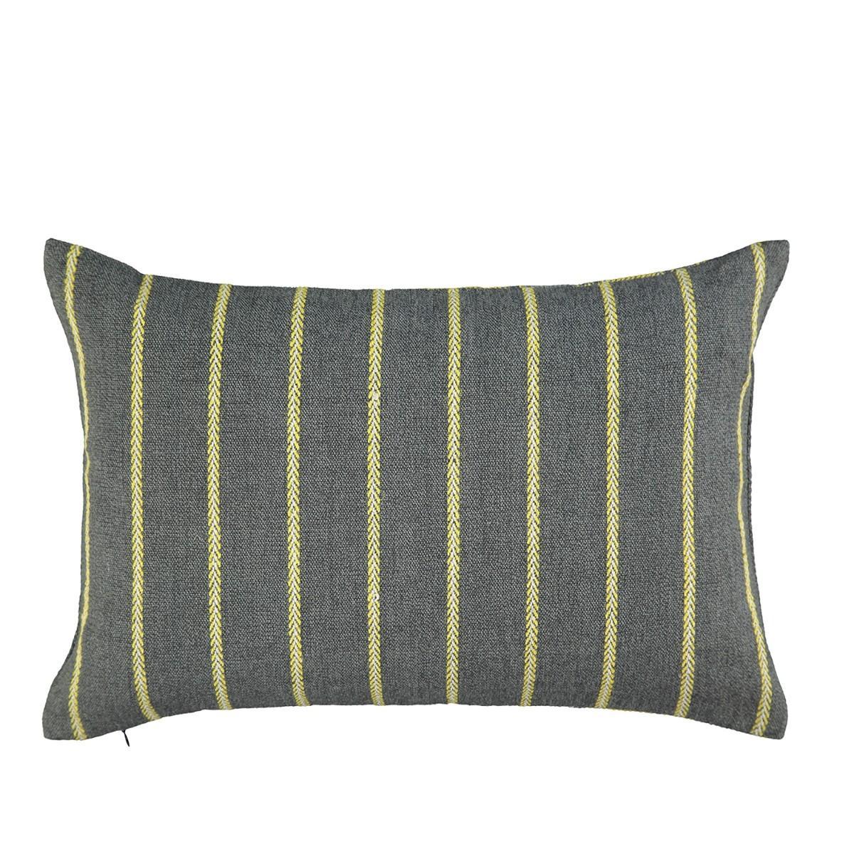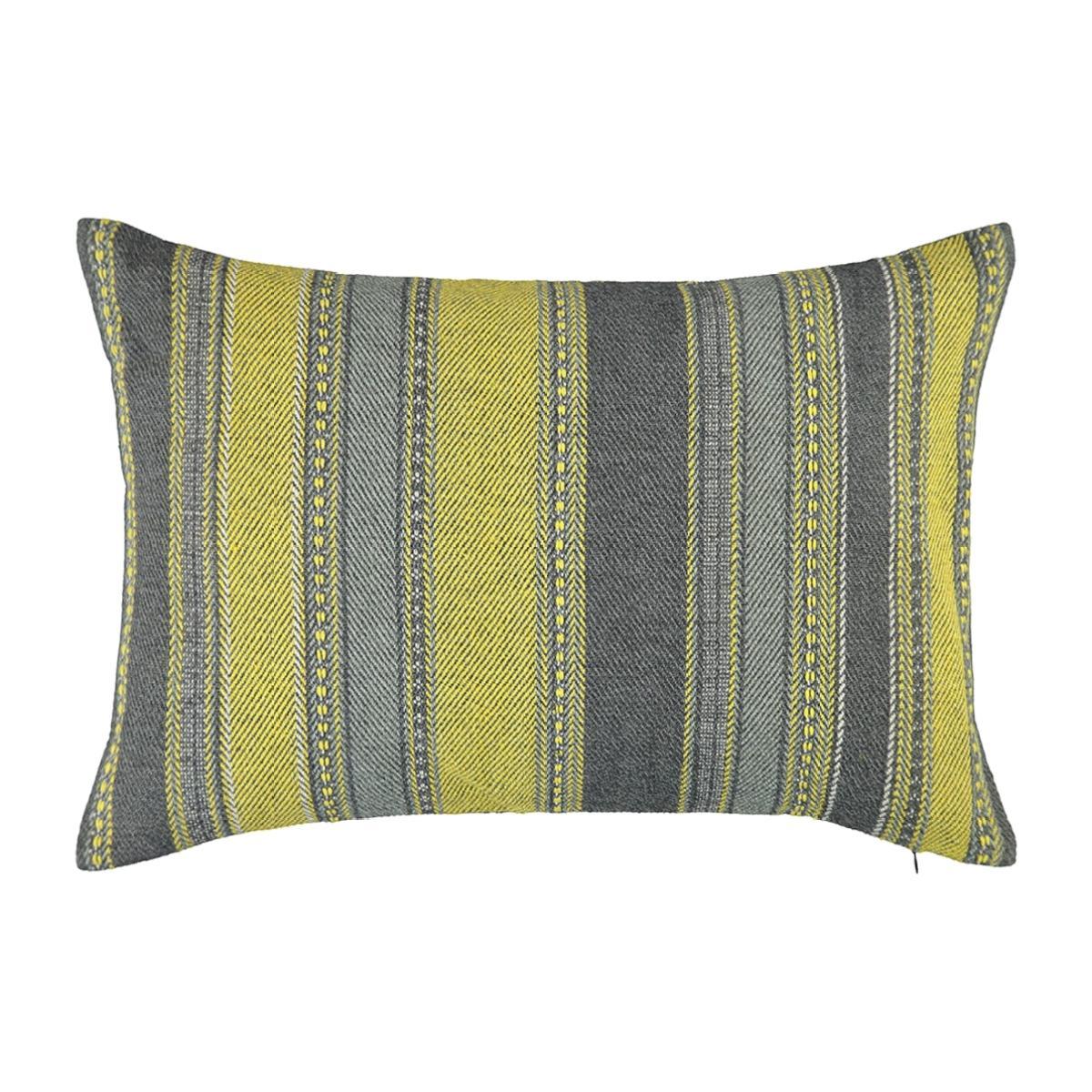 Vibrant stripes of woven colour in a smart twill construction are created by using a blend of soft cotton and textural jute yarns. Supplied with its feather insert pad.