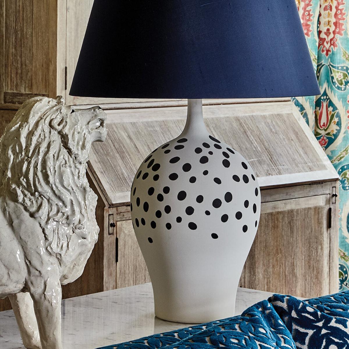 Is your lighting looking less than inviting? Let this lamp base from William Yeoward save the day. With charming speckled design, it's crafted from ceramic and is perfectly paired with the brand's lamp shades available separately. Key features: * Table lamp base * Material: ceramic * Dimensions: H49xØ24cm * Lamp shade not included but available separately * Curved shape * Speckled pattern * In white and blue * Made in England