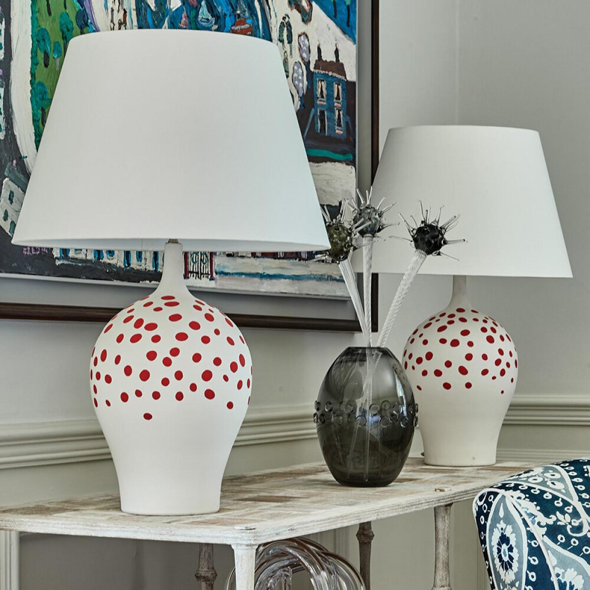 Is your lighting looking less than inviting? Let this lamp base from William Yeoward save the day. With charming speckled design, it's crafted from ceramic and is perfectly paired with the brand's lamp shades available separately. Key features: * Table lamp base * Material: ceramic * Dimensions: H49xØ24cm * Lamp shade not included but available separately * Curved shape * Speckled pattern * In white and red * Made in England