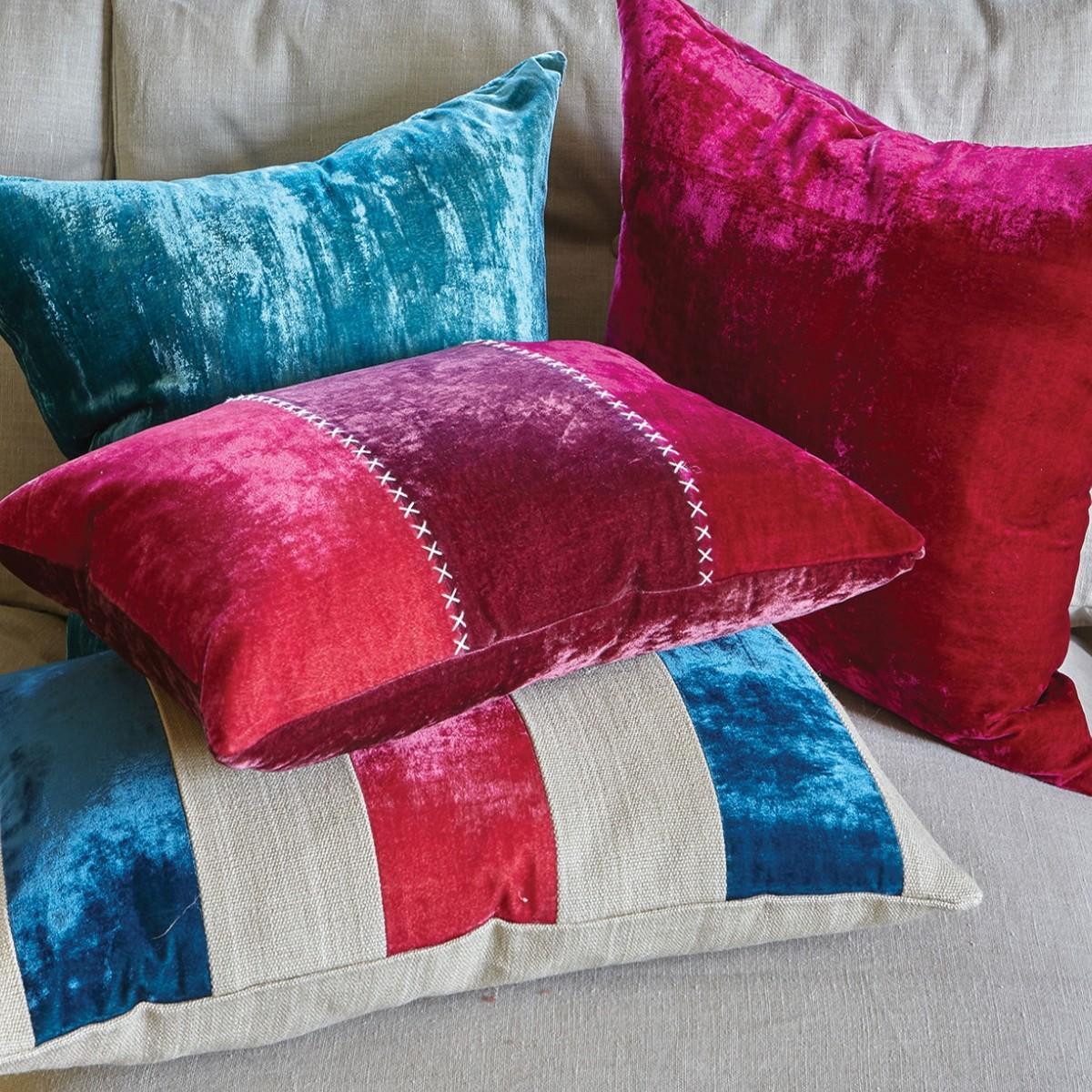 Three shades of luxurious velvet and embroidery combine to form this beautiful design. Supplied with its feather insert pad.