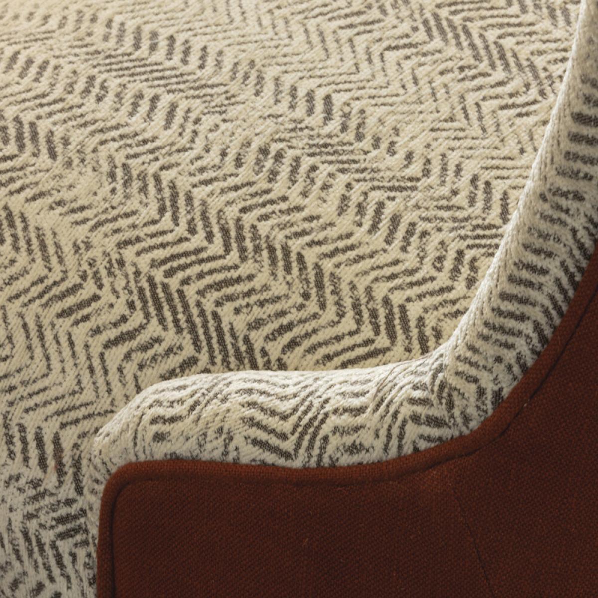 Complete your breakfast bar with this Atworth Carver barstool from William Yeoward. With a gently rounded form and buttoned detailing, this chair has a wonderfully modern look. Upholstered with a striking herringbone pattern and orange back, it’ll look right at home in any scheme.