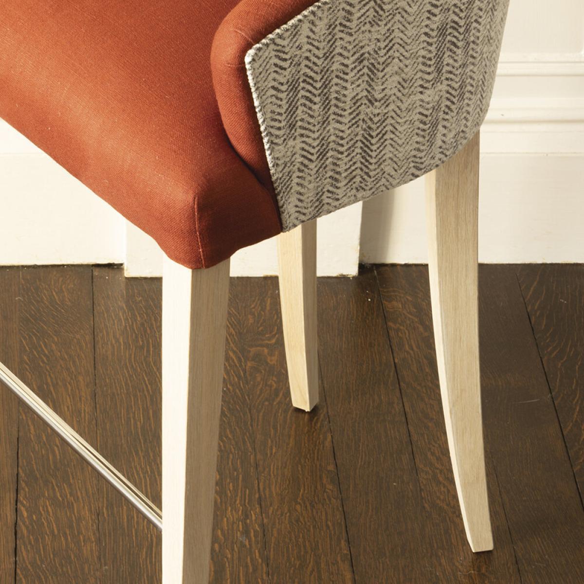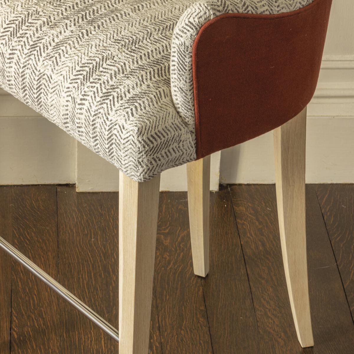 I love this barstool for its versatile blend of classic and contemporary touches. The Seborga Cloud and Highland Linen Spice fabric offers a sophisticated yet approachable look, making it adaptable to various interior styles-from modern rustic to traditional kitchens. Its comfortable, slightly curved backrest combined with the sturdy wooden legs makes it practical for everyday use, while the tactile textiles add visual interest. It works particularly well in open plan kitchens or bar areas where comfort meets style, and pairing it with neutral or warm-toned cabinetry can really make the fabric pop. For styling tips, consider keeping surrounding furniture simple to let the fabric details shine, and add cushions in complementary colours for extra comfort and visual layering.