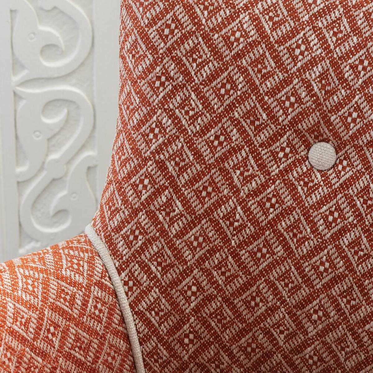 Pull up a seat in this Atworth Carver side chair from William Yeoward. With a gently rounded form and buttoned detailing, this chair has a wonderfully modern look. Upholstered with a striking orange and beige patterned fabric, it’ll look right at home in any room of your home.