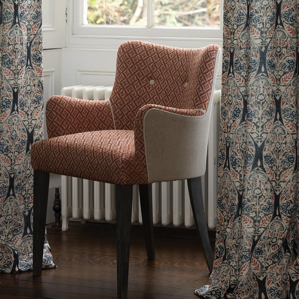 The William Yeoward Atworth Carver makes for an excellent accent chair, especially in classic or eclectic interiors. I love how the Ofelia stone and Isla spice fabrics add warmth and subtle pattern, making it versatile for both traditional and contemporary settings. This piece works well dappled in a cosy corner or as a statement at the end of a bed, offering both style and comfort. For styling tips, pair it with a small side table and a decorative lamp for a reading nook, or elevate its presence by placing it amidst soft textiles and layered accessories to create an inviting, lived-in feel. Its elegant silhouette and refined upholstery make it adaptable for various colour schemes and decor styles.