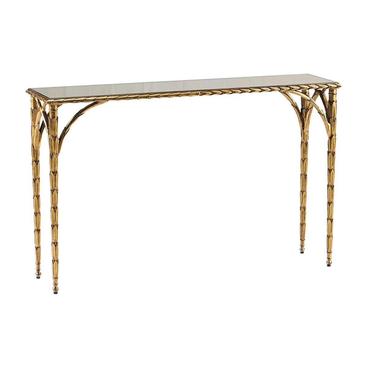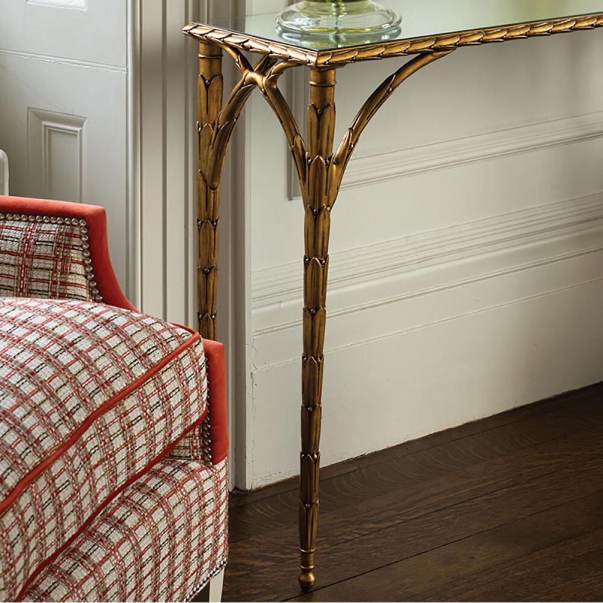 I love this piece because of its elegant blend of modern polish and classic materials. The bronze with matte gilding gives it a warm, sophisticated glow that suits both traditional and contemporary interiors. It works particularly well in hallways or entryways where it can serve as a statement piece, or behind a sofa in a living room. To style it effectively, consider adding a sleek table lamp, a mirror above to enhance its reflective top, or a curated selection of objects like vases or art books to keep it looking uncluttered. Its slim profile also makes it perfect for narrower spaces, offering both function and visual interest without overwhelming the room.