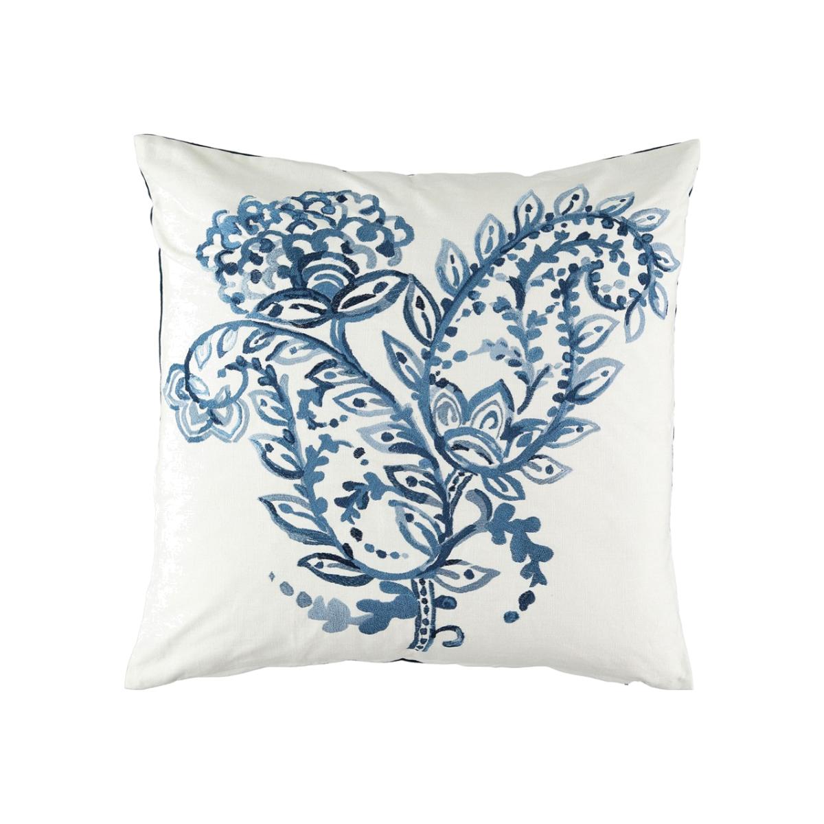 Denim woad and indigo embroideries jostle for position in this perfect emblematic embroidery. Supplied with its feather insert pad.