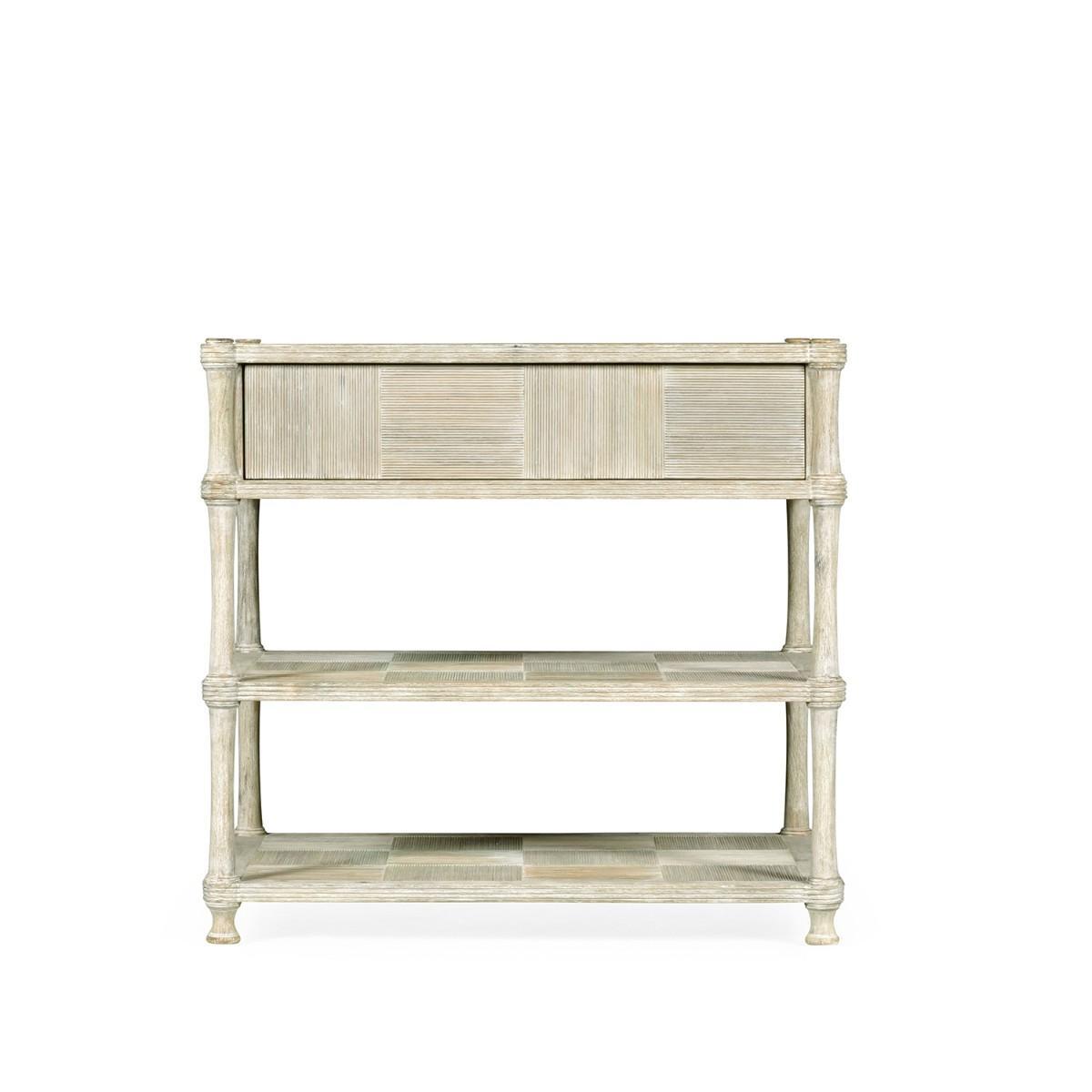 The Bywater bedside table with drawer, perfect for storing away nighttime essentials. Finished in our popular washed acacia with beautifully carved detailing and polka dot lined drawer. A matching bedside cupboard is also available.