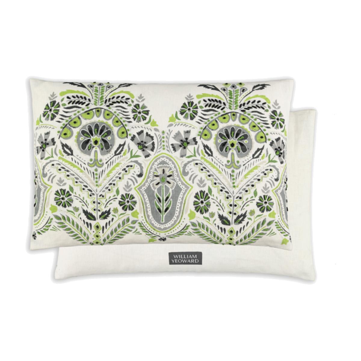 I love the William Yeoward cushion for its vibrant, detailed pattern, which really adds a hint of colour and interest to neutral or minimalist interiors. It's especially versatile because the mix of green, grey, and white makes it suitable for both contemporary and traditional settings. To style it effectively, try pairing it with plain, textured throws or ambivalent upholstery colours to let the cushion be the focal point. It works beautifully on a sofa, armchair, or even as a bed accessory, and I’d recommend layering it with solids for a balanced look, ensuring the pattern doesn’t compete too much with other design elements. Practical tip: because of its pattern, keep surrounding accessories simple to maintain an elegant, curated aesthetic.