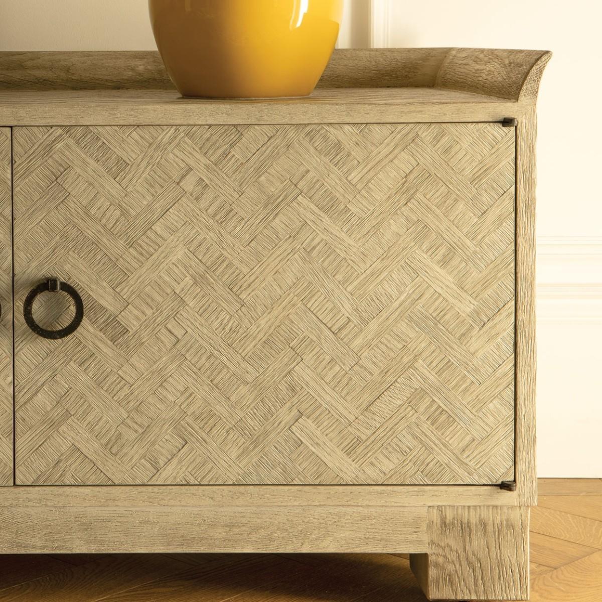 Signature of our beautiful collected furniture collection is the use of marquetry. The Ferdinand was taken from a small piece of 17th century wall panelling that William saw on a visit to Stockholm. This low storage unit is perfect in a TV room, or just as a low unit on a more contemporary space. Use as a low unit with a seat cushion on top for show storage in a hallway or boot room.