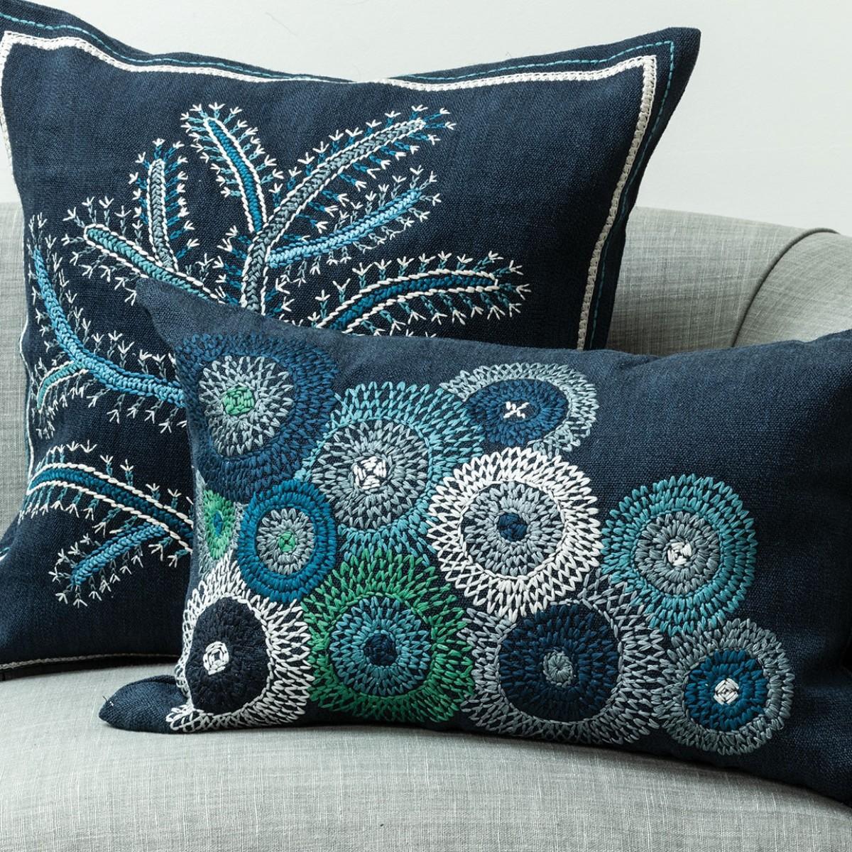I love this cushion for its versatile and sophisticated colour palette, which can easily elevate both traditional and contemporary interiors. The indigo hue makes it an excellent choice for adding depth to a neutral sofa or bed. It works particularly well in relaxed, coastal, or bohemian schemes but can also bring a pop of colour to more subdued spaces. For styling tips, combine it with textured throws or mix it with patterns that reference natural tones - it’s great for layering. Its embroidered design adds a crafted touch that makes it stand out without overwhelming the space, making it a reliable go-to for adding colour and interest.