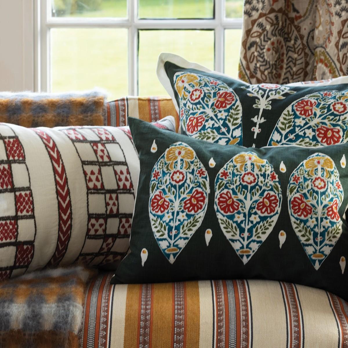 I love this cushion for its lively yet sophisticated print, which adds a touch of character to both classic and contemporary interiors. The bold pattern and rich spice tones make it a versatile piece that can anchor a neutral sofa or complement other colourful furnishings. It's particularly effective layered with softer textures like linen or wool, or paired with simpler cushions to really let the pattern stand out. Practical styling tips include using it as an accent piece on armchairs or mixing it with solid-colour cushions for a curated, eclectic look. It works well in living rooms and bedrooms alike, especially where you want to introduce a pop of colour without overwhelming the space.