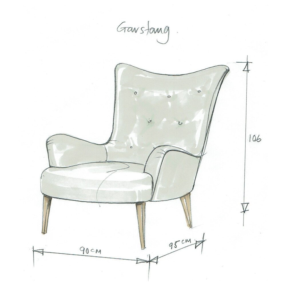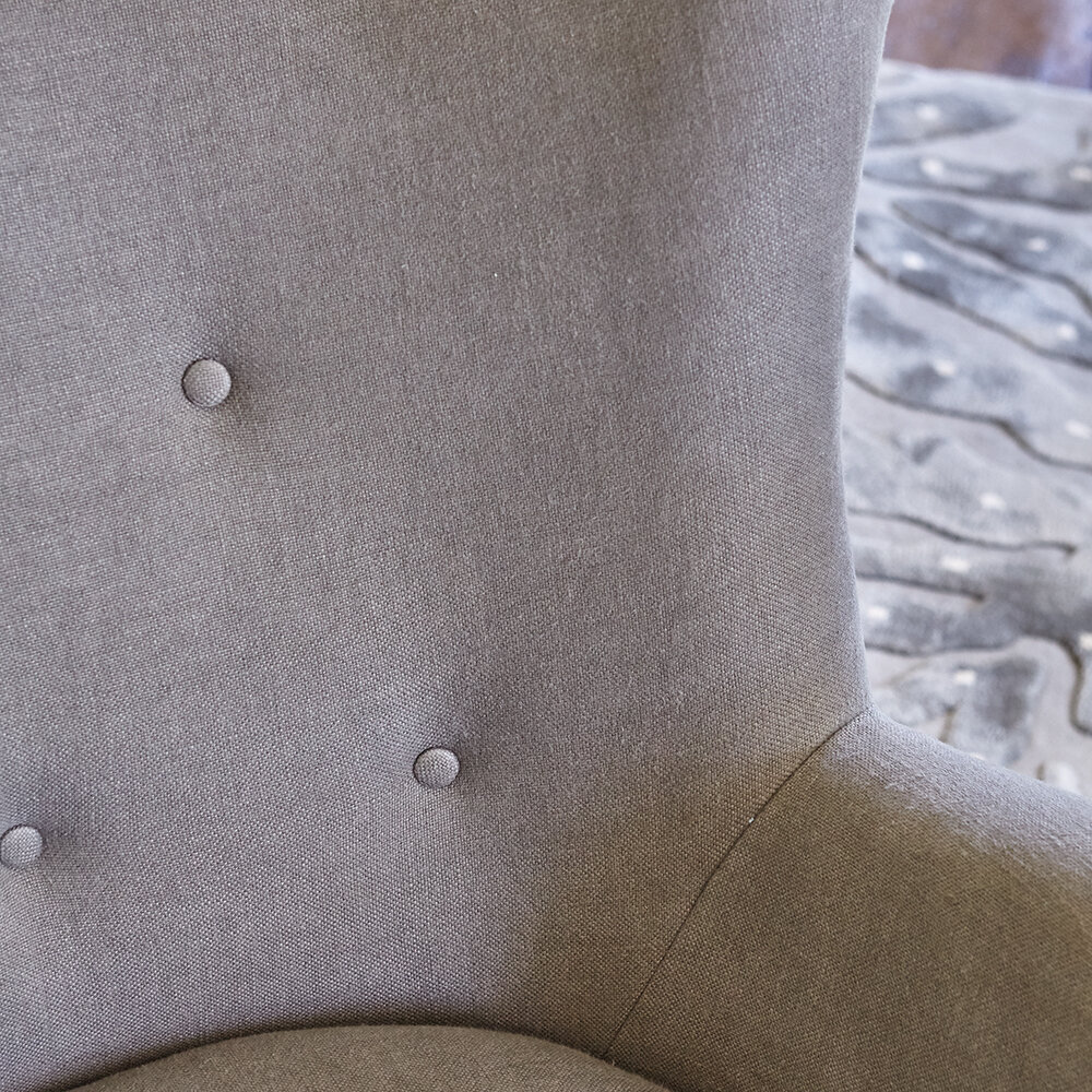 The Garstang armchair from William Yeoward commands attention. With its high-back style and buttoned finish, it’s a contemporary take on a classic style. This comfortable armchair is finished in grey fabric upholstery with chestnut wood legs. Ideal for the study, bedroom or living room, it’s versatile style makes it a welcome addition to any space.