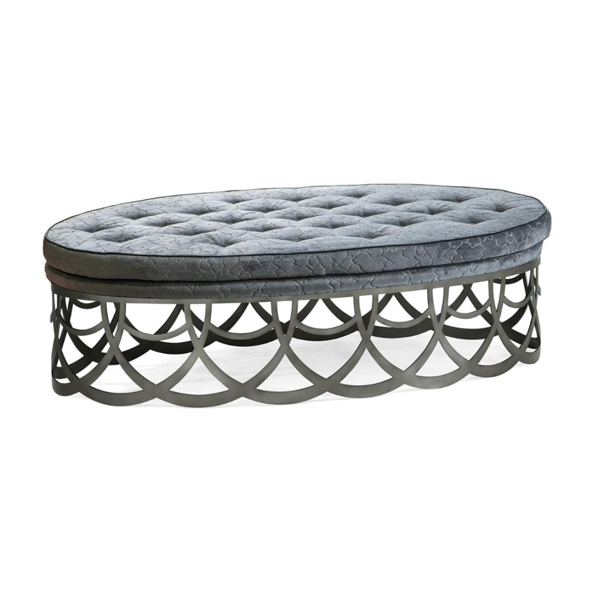 The Gigolette Ottoman can be upholstered in your choice of fabric, so although the base is a stocked item Gigolette is not available for immediate delivery. A useful piece that can be used as seating or as a coffee table. Please contact our customer services to discuss options. Also available in an antique bronze finish.