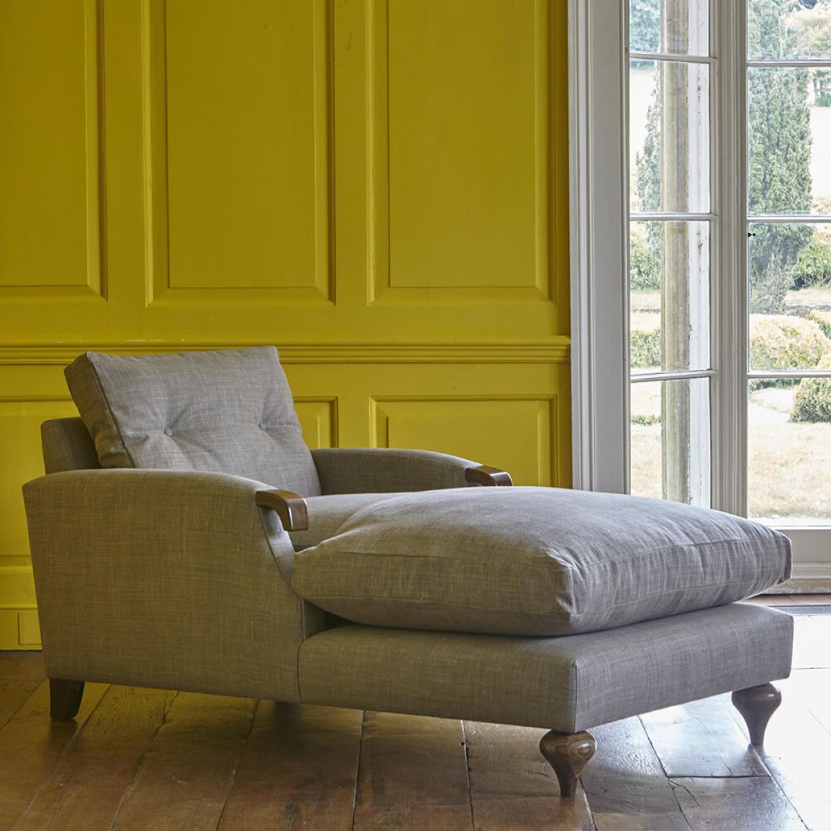 Why sit when you can lounge on this Kooltown chaise longue from William Yeoward. Wonderfully comfortably and laid-back, this chaise will make a stylish addition to your home with its nod to mid-century style. Pair with accessories and furniture from William Yeoward to complete the look. Key features: * Material: linen, wood * Dimensions: H82xW84xD163cm * Seat height: 48cm * Mid-century inspired design * Grey colour