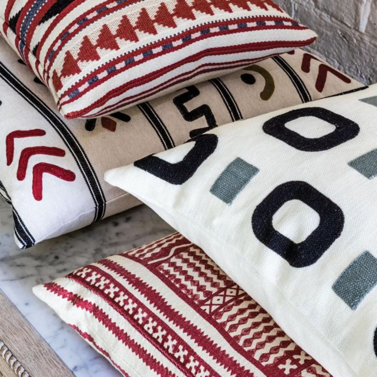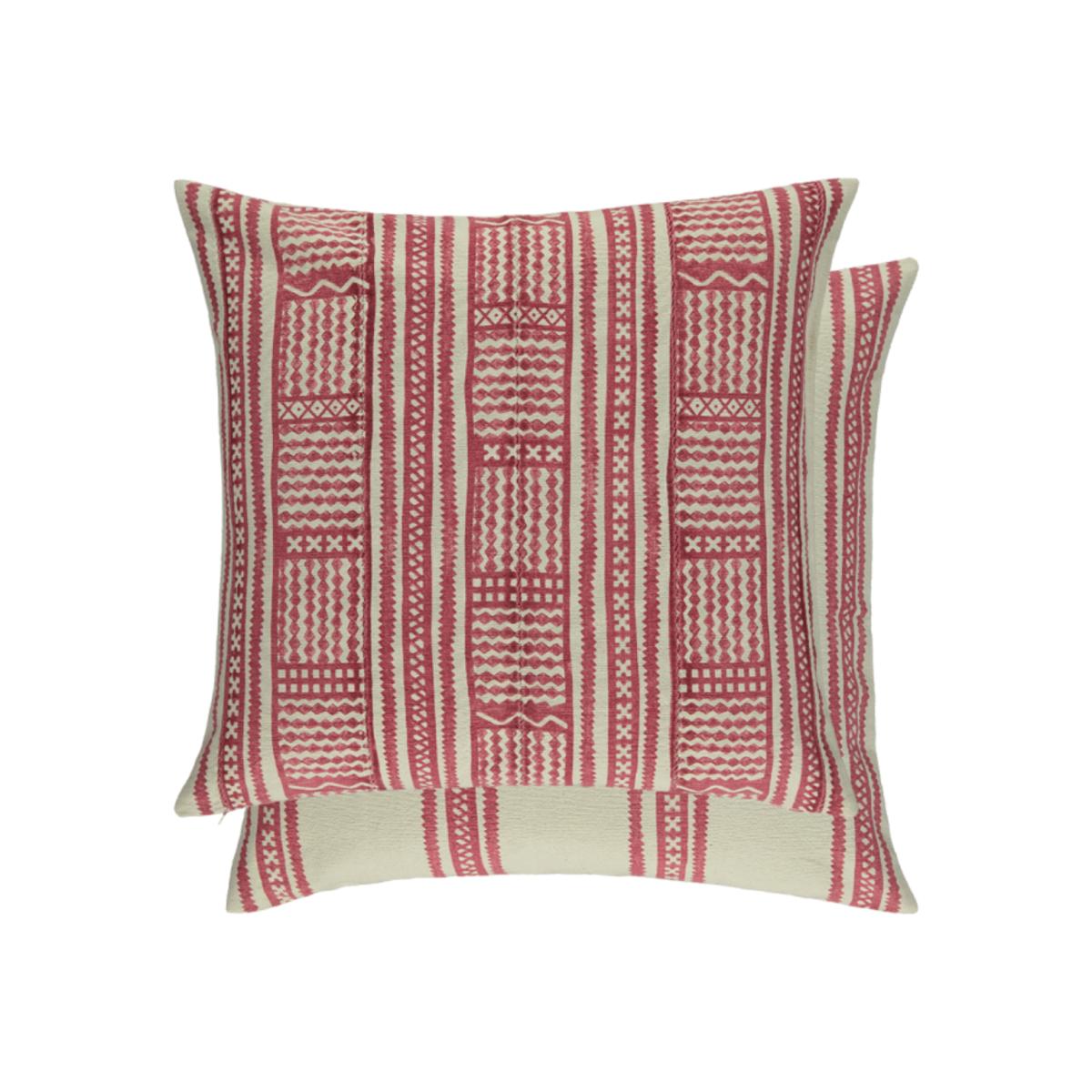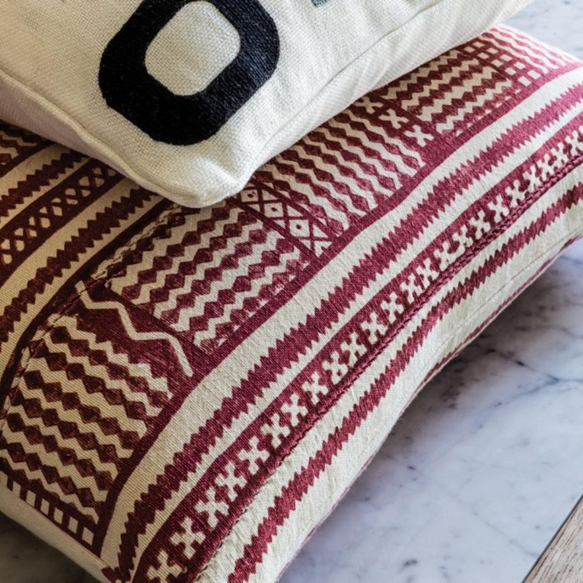 I love the Kuba cushion in rouge for its bold yet versatile pattern, which adds a striking visual interest without overwhelming a space. It works particularly well in both contemporary and traditional interiors, especially when paired with neutral sofas or armchairs to let the pattern stand out. For practical styling, try combining it with other textured cushions in complementary shades - deep reds, beiges, or muted pinks - to create a layered, inviting look. It’s perfect for adding a splash of colour and pattern on a plain sofa or bed, making the whole setting feel more polished and curated.