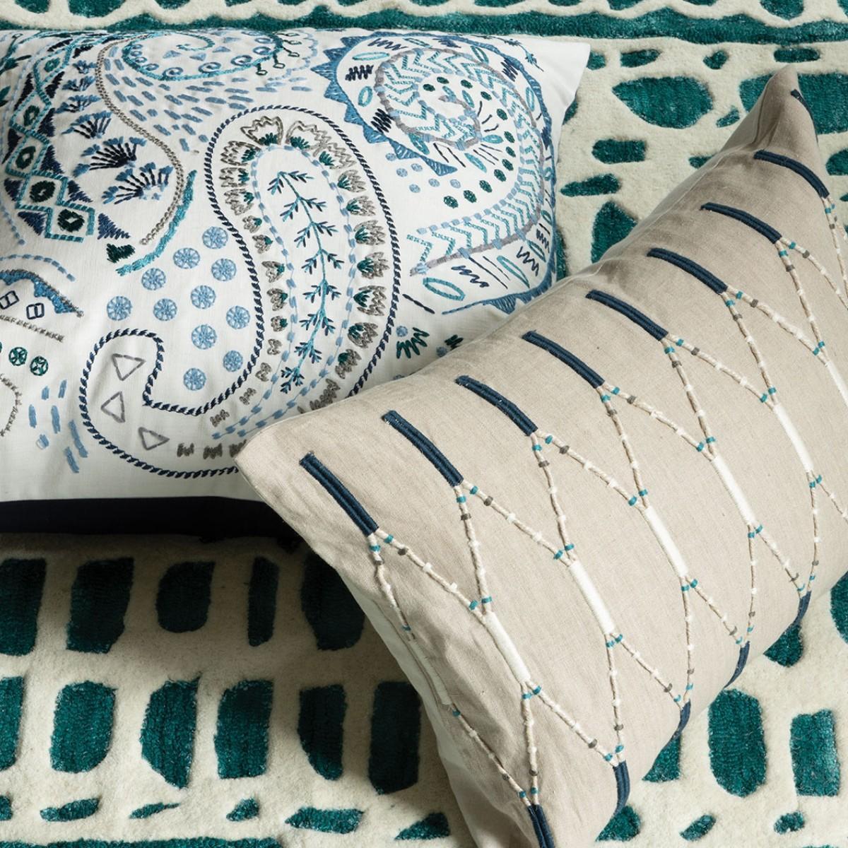 I love this cushion for its versatile, timeless appeal and subtle nod to craftsmanship with its detailed embroidery. It works particularly well in classic or contemporary interiors that benefit from a touch of pattern and colour. The indigo hue adds depth and can anchor a neutral colour scheme or complement other blue accents. Practical styling tips include mixing it with textured fabrics like tweed or linen on a sofa or bed for a layered, inviting look. It also pairs beautifully with natural woods or brass finishes, making it a great addition to both relaxed and sophisticated spaces.