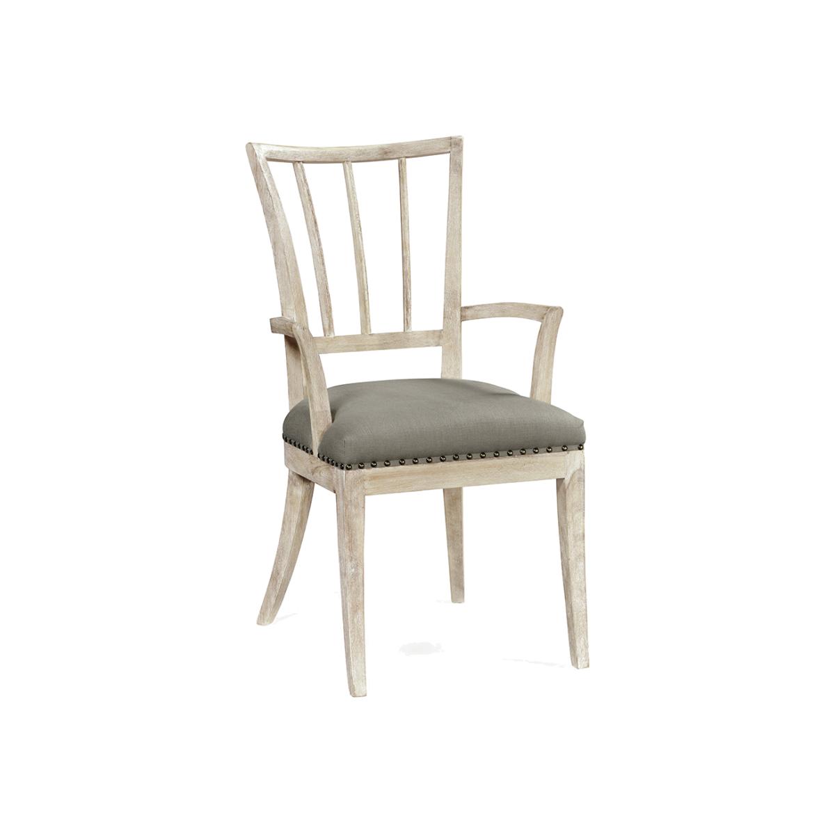 Create a stylish dining setting with this Lucillo armchair from William Yeoward. Strong, generous and practical in design, it has a washed acacia finish and features a plump upholstered seat for optimum comfort. With a modern appearance, it blends effortlessly into a wide range of interior spaces. Key features: * Armchair * Material: wood, upholstery * Dimensions: H96xW54xD59cm * Washed acacia finish * Modern appearance * Strong, generous and practical design