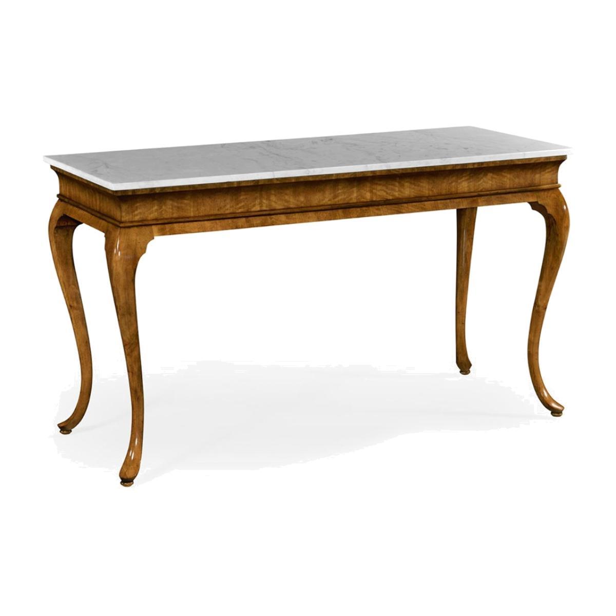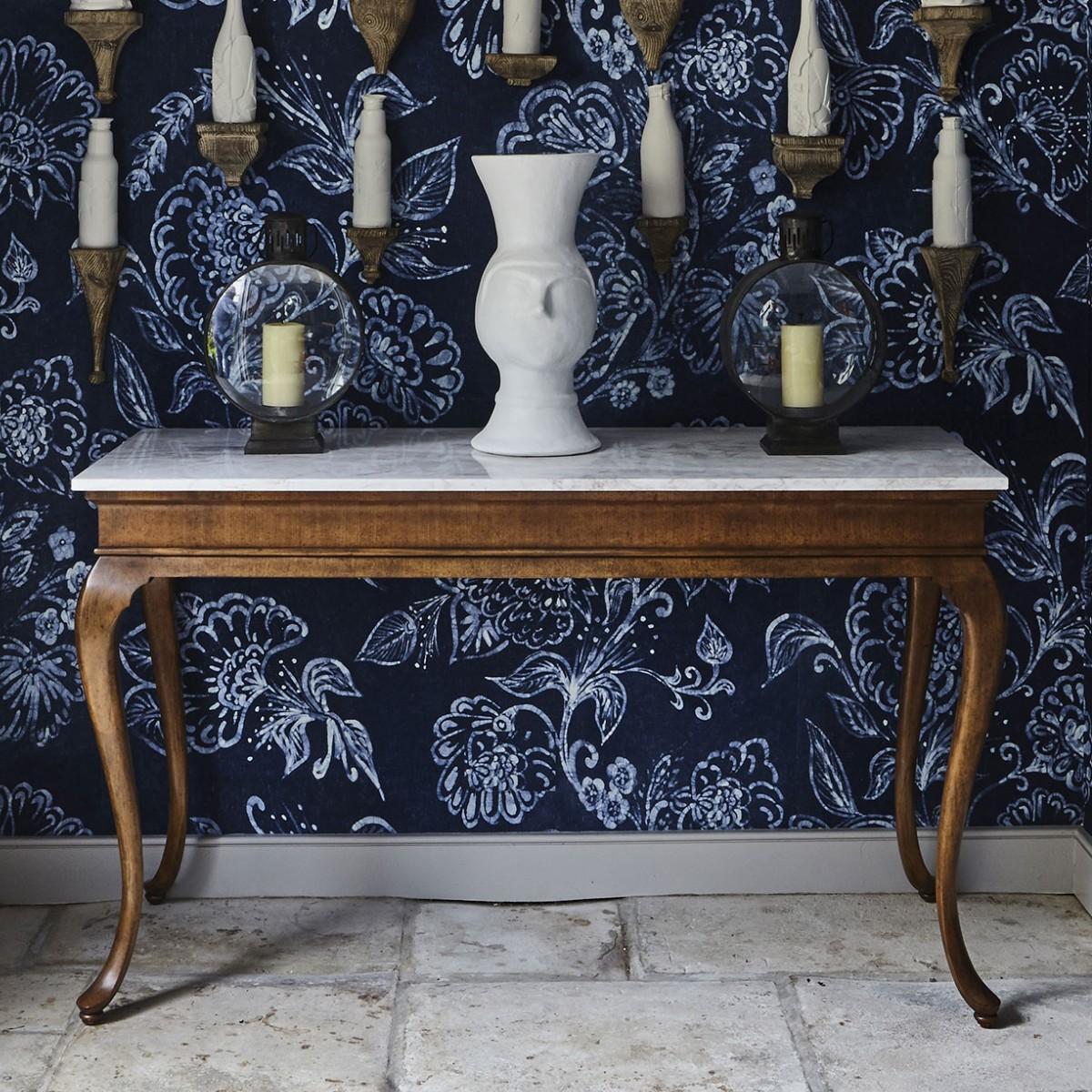I’m a fan of this Marquette console for its neat blend of classic curves and a muted grey-fruitwood finish - it slots easily into both traditional and more pared-back, contemporary hallways. The slender legs keep it feeling light, so it won’t overwhelm a narrow entrance or the space behind a sofa. For styling, try a round mirror hung just above to echo the tabletop’s soft tones, then layer in a sculptural lamp on one side and a small stack of coffee-table books or a ceramic bowl on the other. A single vase of foliage or flowering stems will introduce texture without clutter, and a slim tray can corral keys or small accessories for real-life practicality.