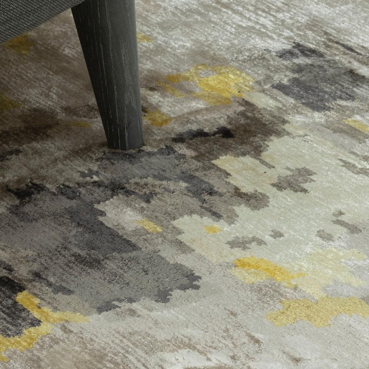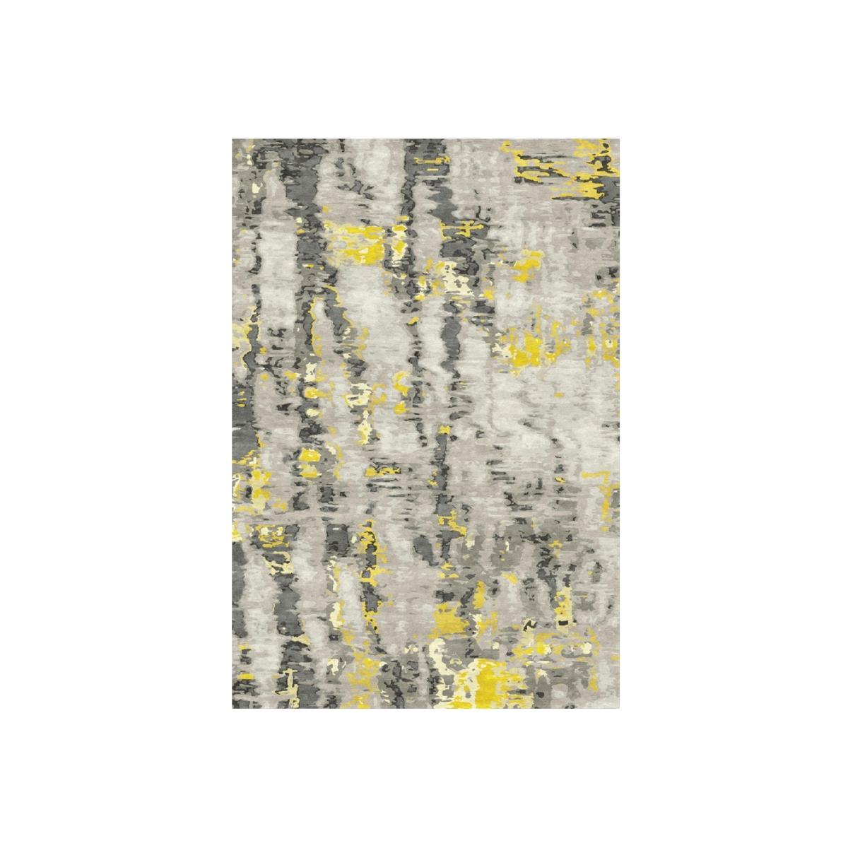 Vibrant shades of yellow and citron float over a neutral background of slate, dove and the palest grey to form a truly beautiful rug. Hand knotted in shimmering bamboo to create a glamorously modern design. Versatile, stylish and contemporary!. Hand knotted, 90% bamboo 10% cotton. Available in 3 sizes.