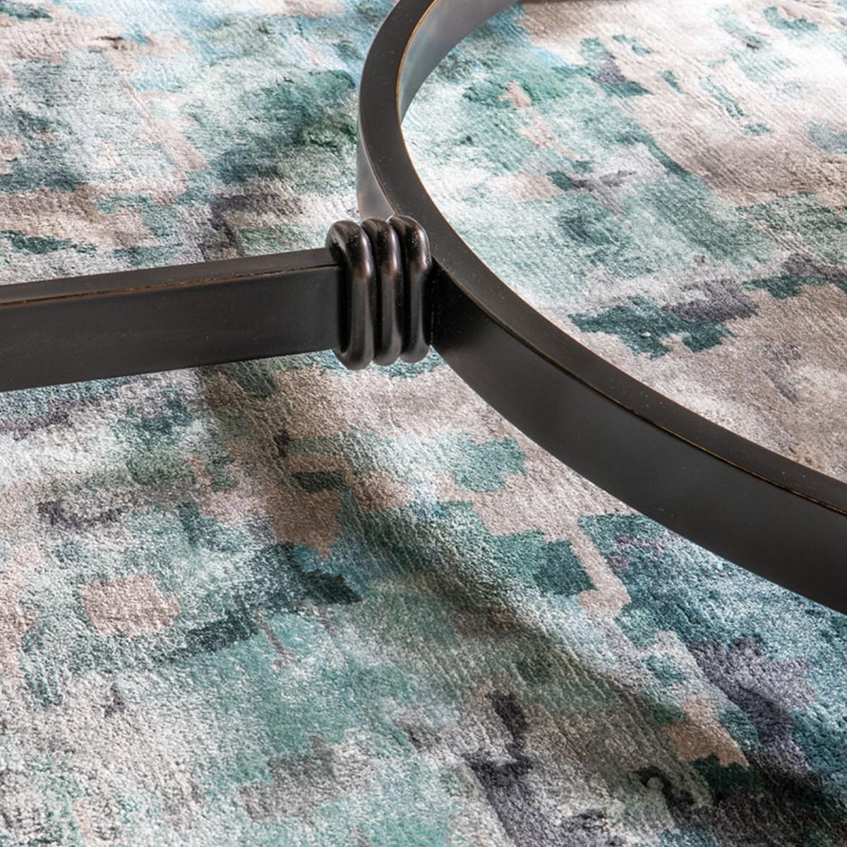 Rich shades of jade and peacock float over a neutral background of slate, dove and palest grey to form a truly beautiful rug. Hand-knotted in shimmering bamboo to create a glamorously modern design. Versatile, stylish and contemporary!.