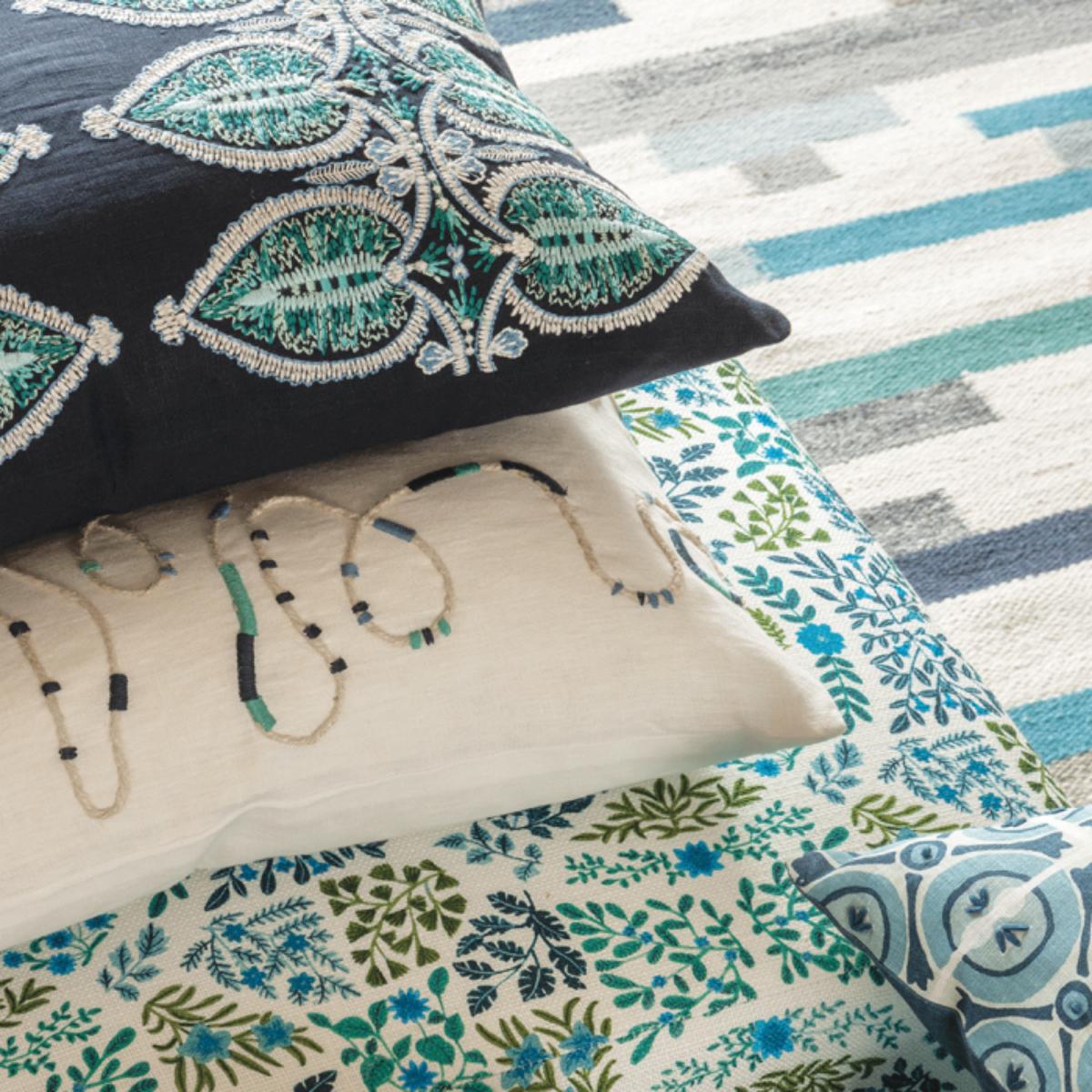 I love the William Yeoward montacute cushion in ocean for its classic yet lively pattern, which adds a touch of sophistication while maintaining a relaxed vibe. It works particularly well in interiors that blend traditional and contemporary elements, such as coastal or cottage-inspired schemes, but can also serve as a contrast in more modern spaces. For styling, consider pairing it with neutral-toned sofas or chairs to let the colour pop, or combine with other accessories in similar blue and green hues to create a cohesive look. Practical tips include mixing patterns carefully, ensuring textures complement each other, and using it as a statement piece on a bed or armchair for instant uplift.