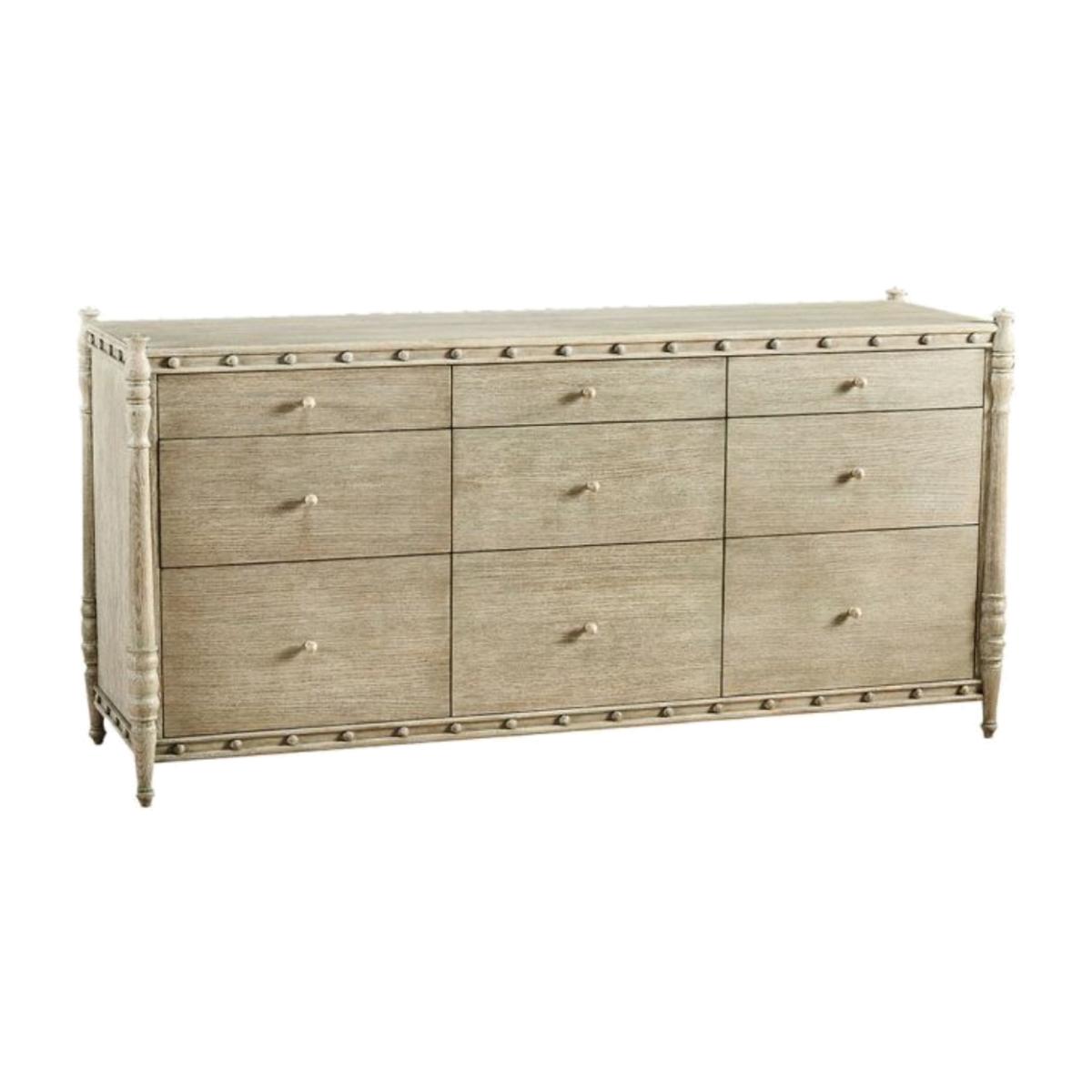 A welcome addition to the 'Greyed Oak' story, the Morris Buffet in Greyed Oak is a testament to true craftsmanship featuring exquisite bobbin detailing and nine spacious marquetry-lined drawers. The ultimate storage solution for bedrooms, kitchens and hallways. Pair with the 'Morris Mirror' and 'Morris Dresser' for a truly timeless look.