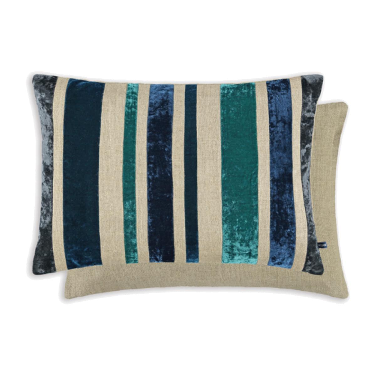 Stripes of beautiful soft velvet in an array of gleaming Midnight Blue colours have been carefully stitched on to a beautiful natural linen ground. The perfect coordinate to our Paddy Danny and Kenny plain velvet cushions.