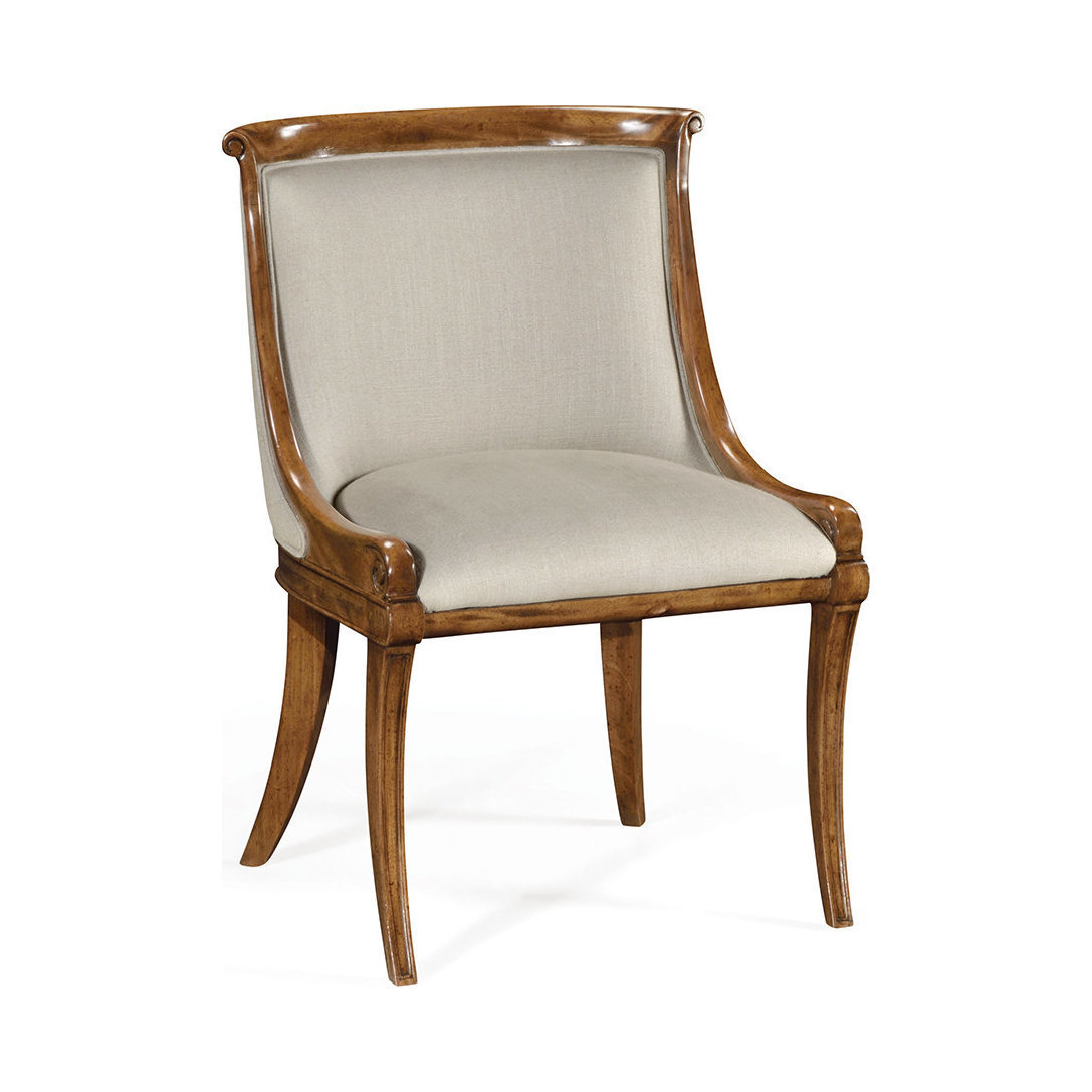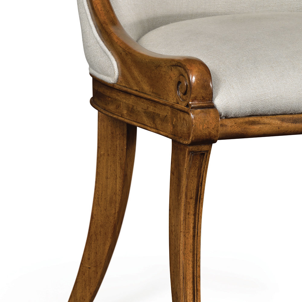 I love this chair for its timeless elegance and craftsmanship. Its classic wooden frame and upholstered seat make it versatile enough to complement both traditional and contemporary dining rooms. It works particularly well in interiors that lean towards classic, country, or shabby chic styles, but can also add a touch of sophistication to more modern spaces when paired with other luxe or textured elements. Practical styling tips include layering it with neutral-toned or patterned cushions for added comfort, and pairing it with a sleek, understated table to let its craftsmanship stand out. This piece is a reliable choice if you're after a combination of comfort, style, and durability.