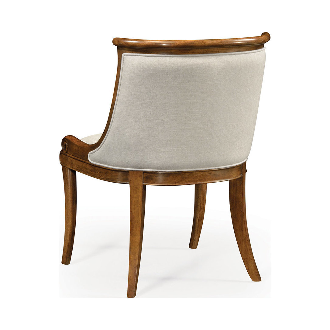 Dine in style with this Rupert dining chair from William Yeoward. Made from wood with a sunwashed mahogany finish, it features a curved back and elegant hand carved legs. Finished with neutral upholstery, it complements a wide range of interior styles and looks fabulous paired with more furniture from William Yeoward.