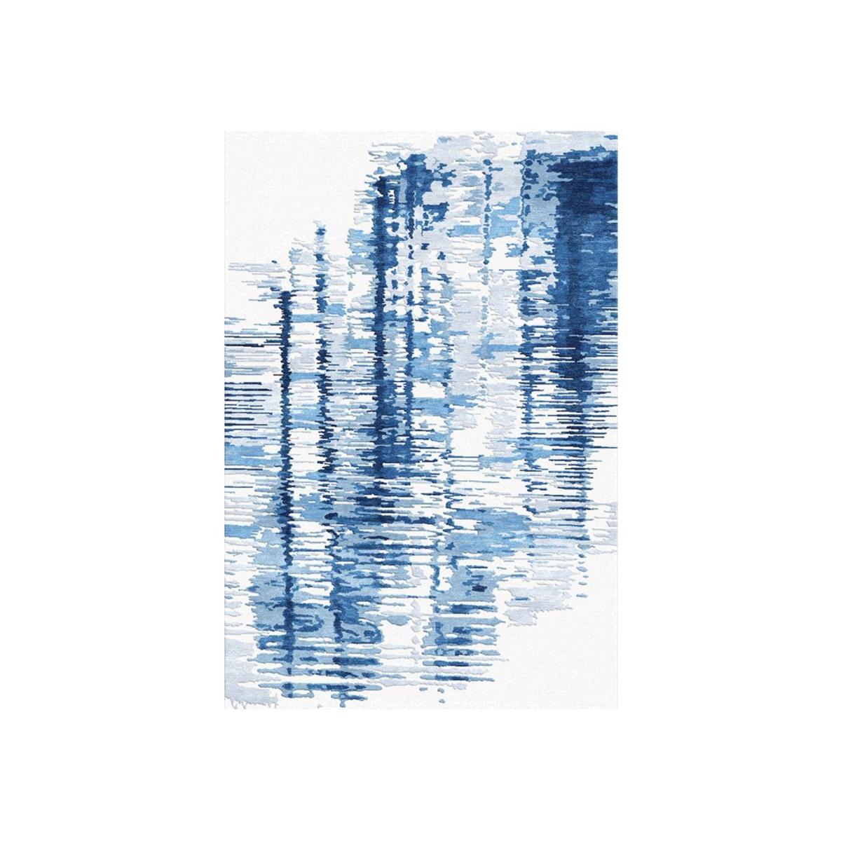 Shimmering reflections on flowing water inspired this versatile design. Shades of indigo and ocean blues through to paler sky tones are used in the raised tencil pile that sits on a very smart handtufted looped pure wool ground.