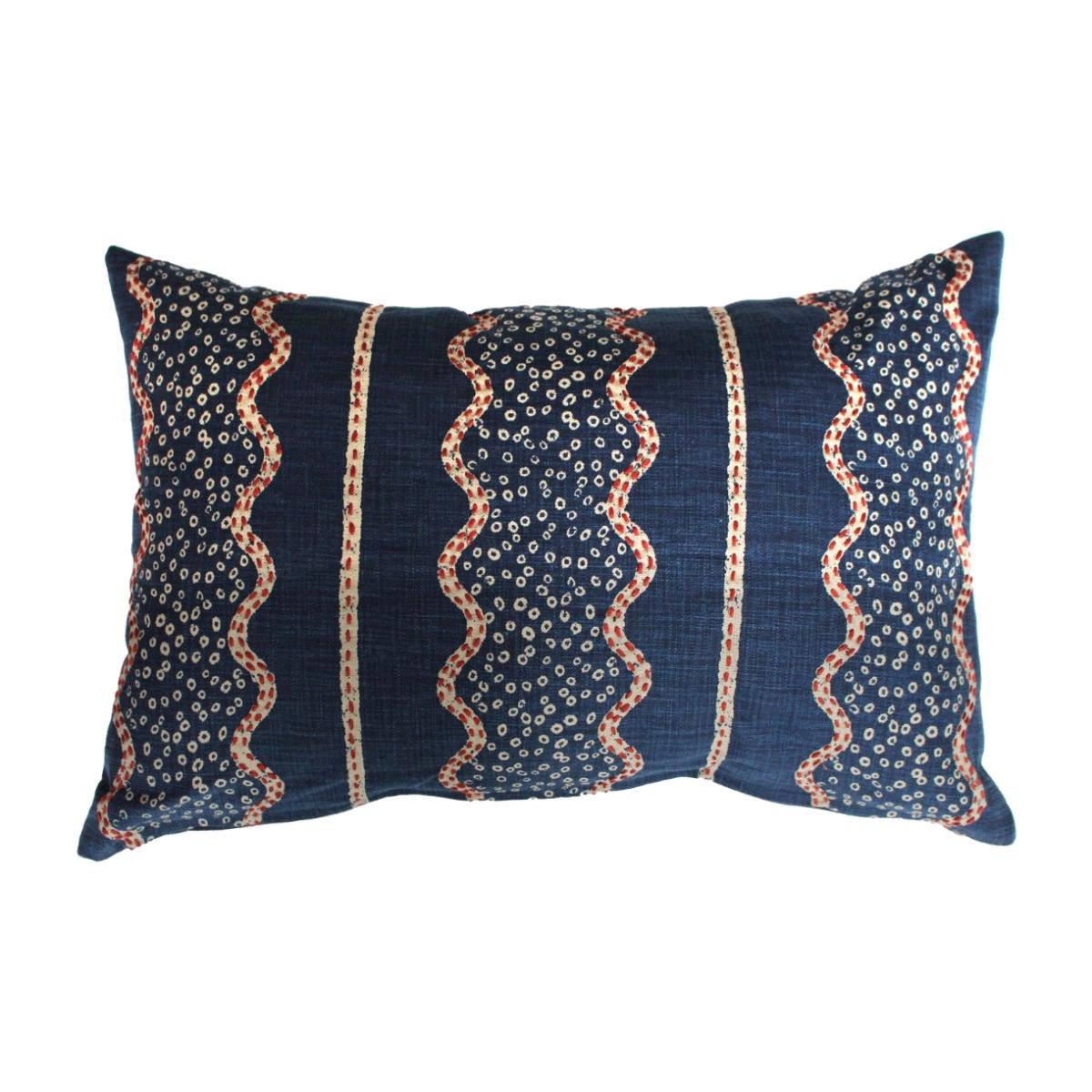 I love this cushion for its striking indigo colour and intricate pattern, which add a touch of sophistication to both traditional and contemporary interiors. It works particularly well in more relaxed spaces like a cosy living room or a sunlit bedroom, where its vibrant design can stand out without overwhelming the decor. Practical styling tips include pairing it with neutral tones for a subtle contrast or mixing it with other patterns and textures for a more eclectic look. Its size and bold pattern make it ideal as a statement piece on sofas or beds, bringing colour and personality to any setting.