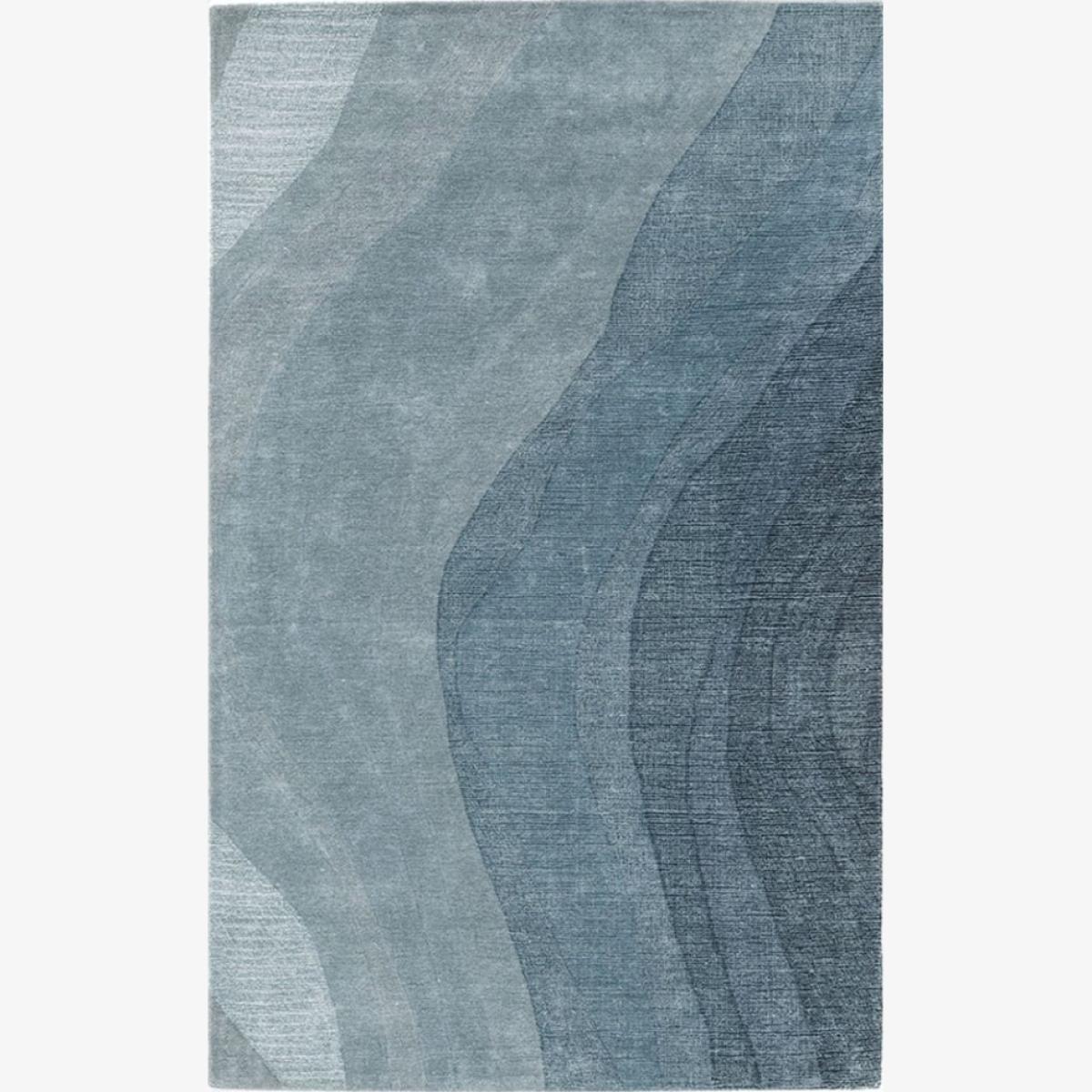 Varuna is named after the Hindu god of water and seemed the perfect choice for this beautiful handtufted rug in luxurious wool and viscose. Perfectly balanced shades from soft aqua and pale jade to richer teal are used to form meandering bands of calming colour to wonderful effect. Soothing and sophisticated.