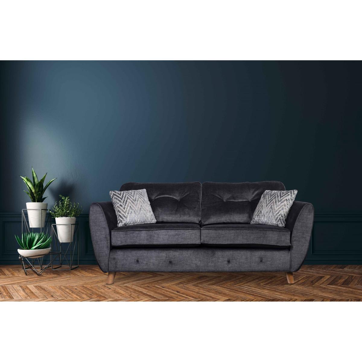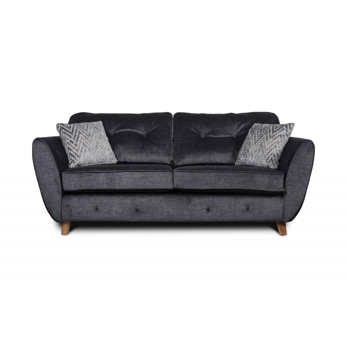 The Willis fixed sofa combines timeless style and a sleek design making it perfect for any home. Button back detail gives this sofa a beautiful high end designer look. Available as a 3 seater, 2 seater, chair and ottoman, the Willis effortlessly creates a comfy but stylish living space. Available in Graphite or Silver fabric with light wood legs and is complimented by patterned scatter cushions.