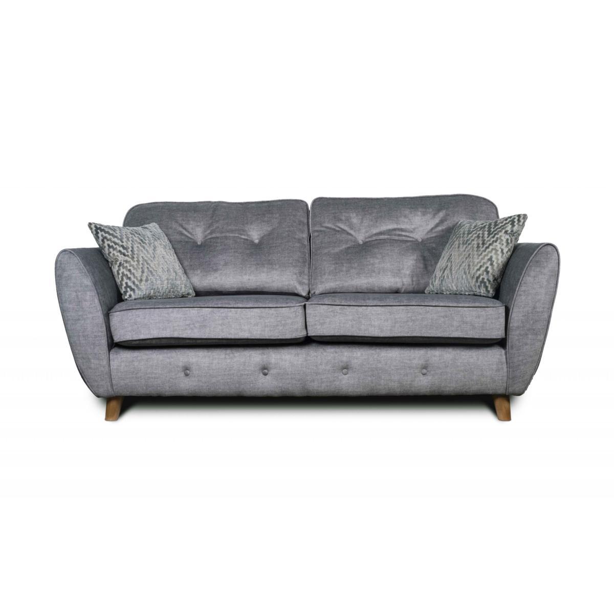 The Willis fixed sofa combines timeless style and a sleek design making it perfect for any home. Button back detail gives this sofa a beautiful high end designer look. Available as a 3 seater, 2 seater, chair and ottoman, the Willis effortlessly creates a comfy but stylish living space. Available in Graphite or Silver fabric with light wood legs and is complimented by patterned scatter cushions.
