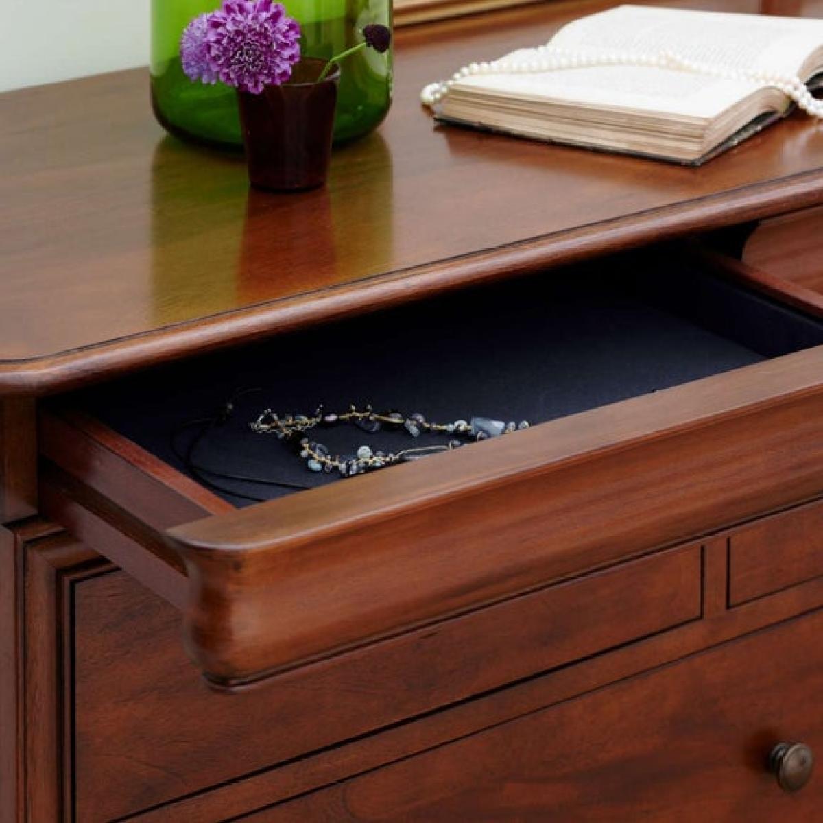 I love this chest for its classic, timeless appeal and versatile size. Its wood finish lends warmth and sophistication, making it suitable for both traditional and contemporary interiors. It works well in bedrooms as a statement piece or even in living rooms for extra storage. Practical styling tips include keeping the top surface uncluttered with a few well-chosen accessories like a lamp or decorative tray, while organising smaller items in the drawers to keep surfaces tidy. Pairing it with complementary furniture in neutral or matching wood tones can create a cohesive and polished look. This piece offers both style and functionality, making it a wise addition to many interior schemes.