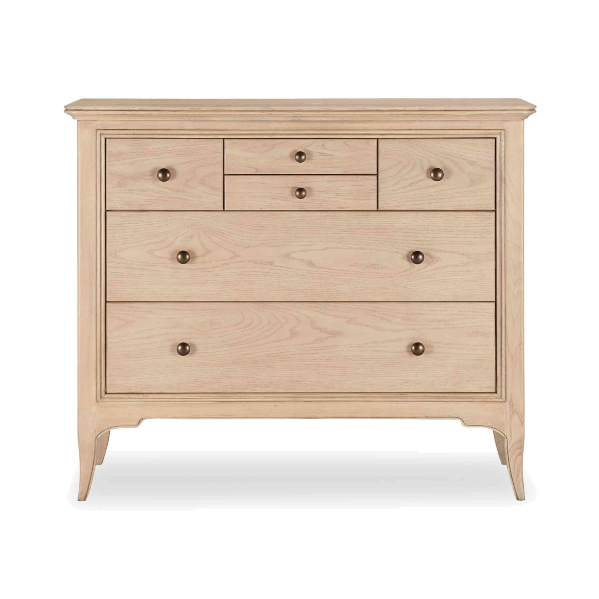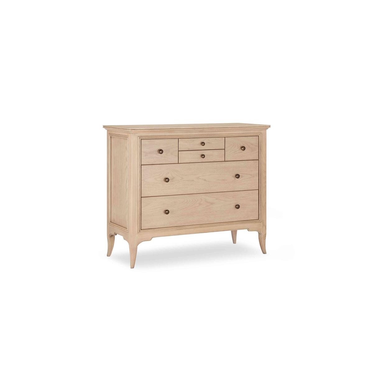 Classic French furniture is reimagined – quite beautifully – in the Willis and Gambier Toulon range. Handcrafted in solid oak, this collection includes pieces for bedrooms, living rooms and dining rooms and all showcase a wealth of wonderful and well-executed details. Superior cabinetry techniques that include carved profiles, beading, panelling and elegantly tapered legs quickly identify the collection as being handcrafted to the very highest standards, while the finishing touches – soft-closing drawers and cupboard doors and well-designed storage spaces, for example – speak to the range’s twenty-first century sensibilities. Eminently suitable for both traditional and contemporary homes, the Toulon range is, indeed, a modern classic. Offering a range of different drawer sizes alongside its solid oak construction and classic cabinetry techniques, this large chest of drawers meets every need for functionality with style. Why you'll love it Inspired by classic French furniture, the Toulon range brims with charm and style. This spacious chest of drawers showcases a wealth of refined details. Elegant curved and tapered legs. Rows of beading. Lower edge has beautifully carved profiles. Soft-closing drawers with authentically aged brass pulls. Made of solid oak, carefully selected for its character and quality. Hand-finished with a white-hued lacquer for a timeless look. Handcrafted by Willis & Gambier. This 6-drawer chest of drawers is part of the Toulon range. What you need to know No two pieces of solid wood are the same. Variations in colour will occur. As wood is a natural product, you can expect to see knots which may be filled. Avoid placing in direct sunlight or close to a heat source. We recommend using coasters and placemats at all times. Wipe clean with a damp cloth and then dry using a soft duster. Do not use silicon-based furniture polish or abrasive cleaners. WARNING!