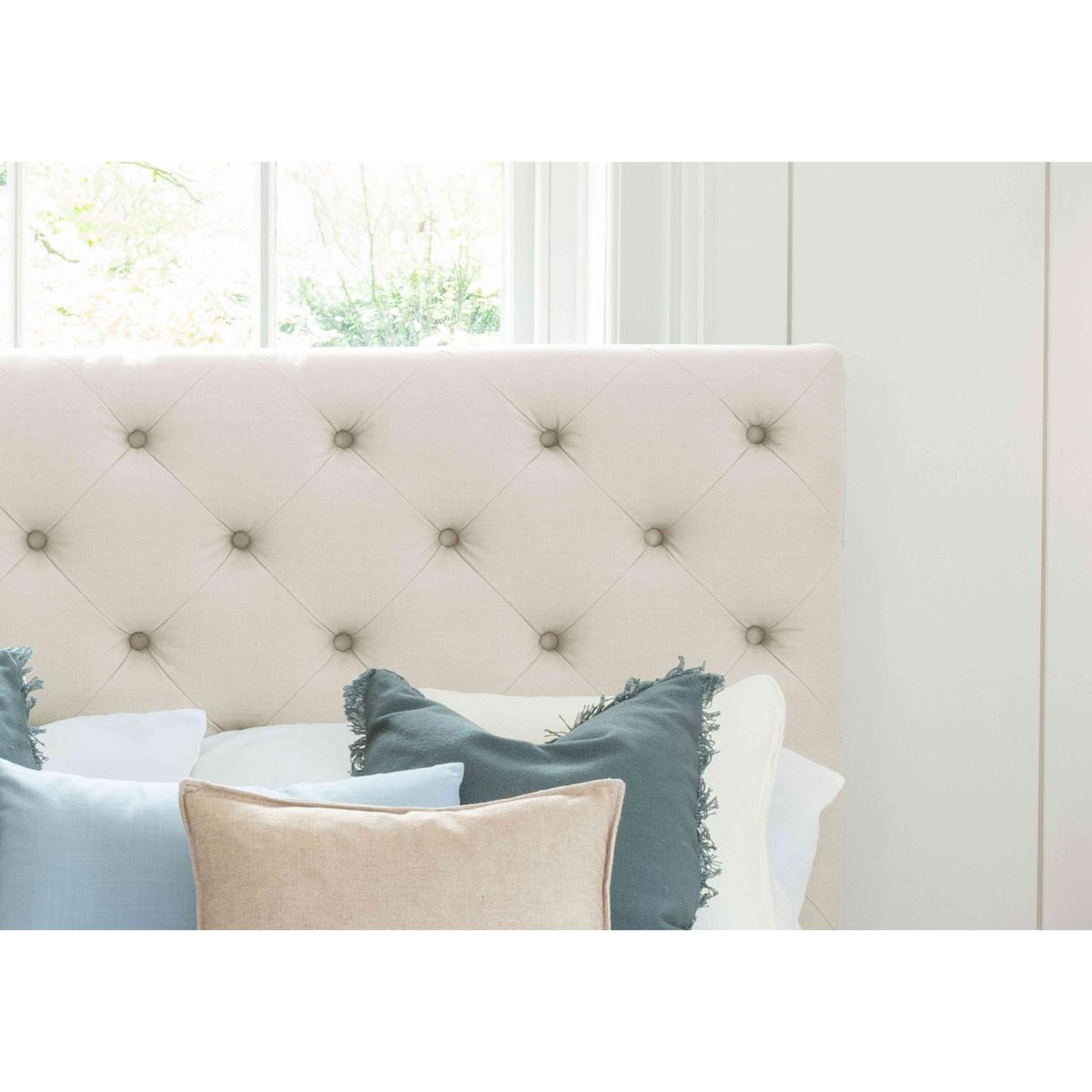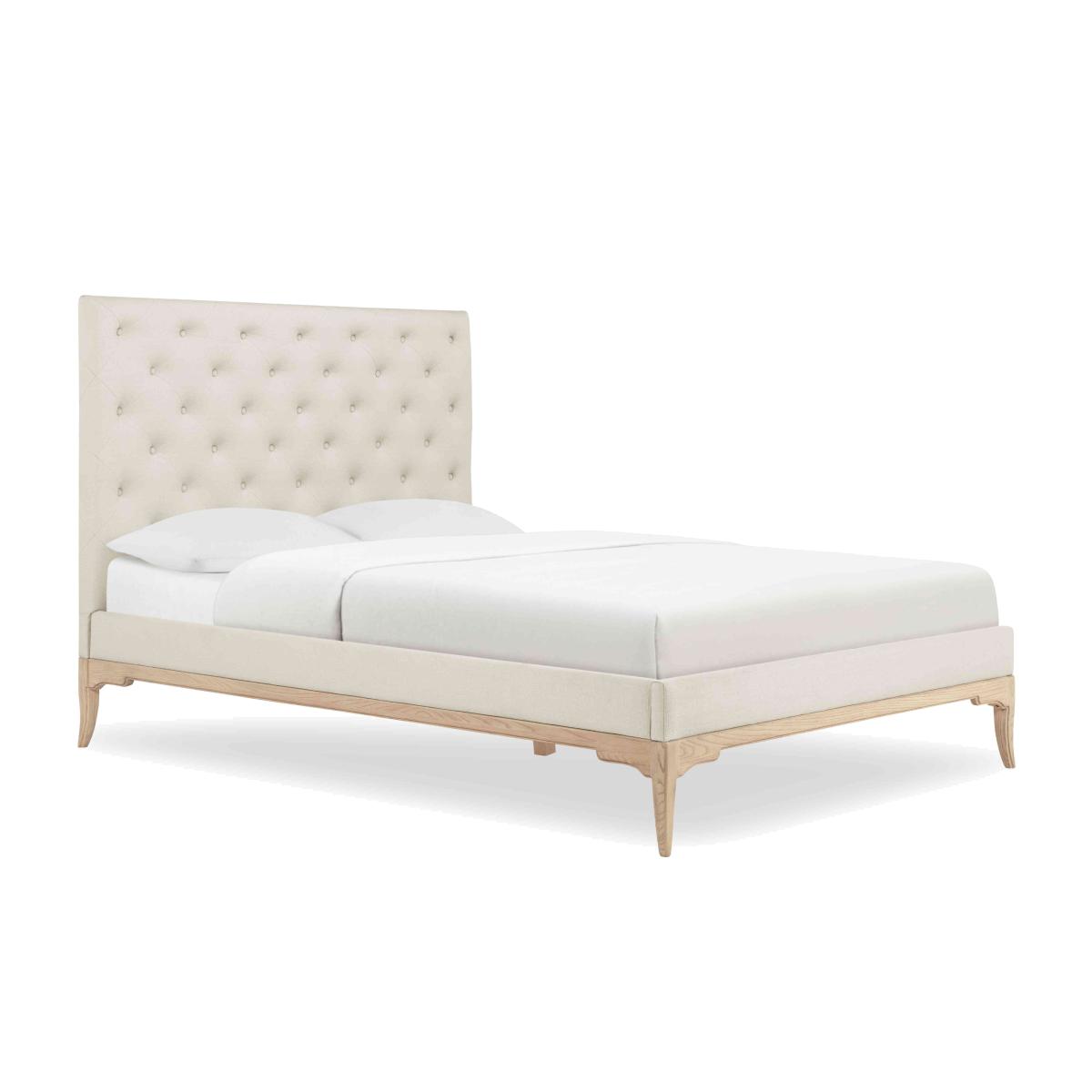 Classic French furniture is reimagined – quite beautifully – in the Willis and Gambier Toulon range. Handcrafted in solid oak, this collection includes pieces for bedrooms, living rooms and dining rooms and all showcase a wealth of wonderful and well-executed details. Superior cabinetry techniques that include carved profiles, beading, panelling and elegantly tapered legs quickly identify the collection as being handcrafted to the very highest standards, while the finishing touches – soft-closing drawers and cupboard doors and well-designed storage spaces, for example – speak to the range’s twenty-first century sensibilities. Eminently suitable for both traditional and contemporary homes, the Toulon range is, indeed, a modern classic. This striking bed frame is defined by its understated elegance. Its solid oak frame is accentuated by the beautiful upholstery and buttoned headboard. Why you'll love it Inspired by classic French furniture, the Toulon range brims with charm and style. This bed frame showcases a wealth of refined details. Elegant curved and tapered legs. Beautifully carved profiles. Upholstered in a choice of fabrics with a tall buttoned headboard. Frame is made of solid oak, carefully selected for its character and quality. Hand-finished with a white-hued lacquer for a timeless look. In double, king and super king sizes. Handcrafted by Willis & Gambier. This bed frame is part of the Toulon range. What you need to know Periodically check fittings have not become loose. Centre rail legs must always be vertical and fully adjusted to support the mattress when in use. No two pieces of solid wood are the same. Variations in colour will occur. As wood is a natural product, you can expect to see knots which may be filled. Avoid placing in direct sunlight or close to a heat source. Wipe clean with a damp cloth and then dry using a soft duster. Do not use silicon-based furniture polish or abrasive cleaners.