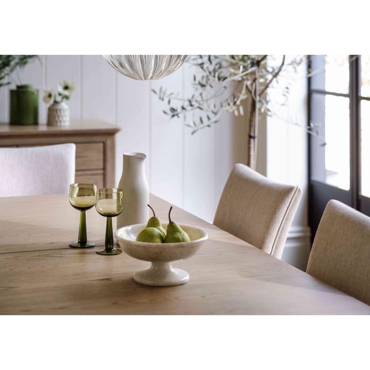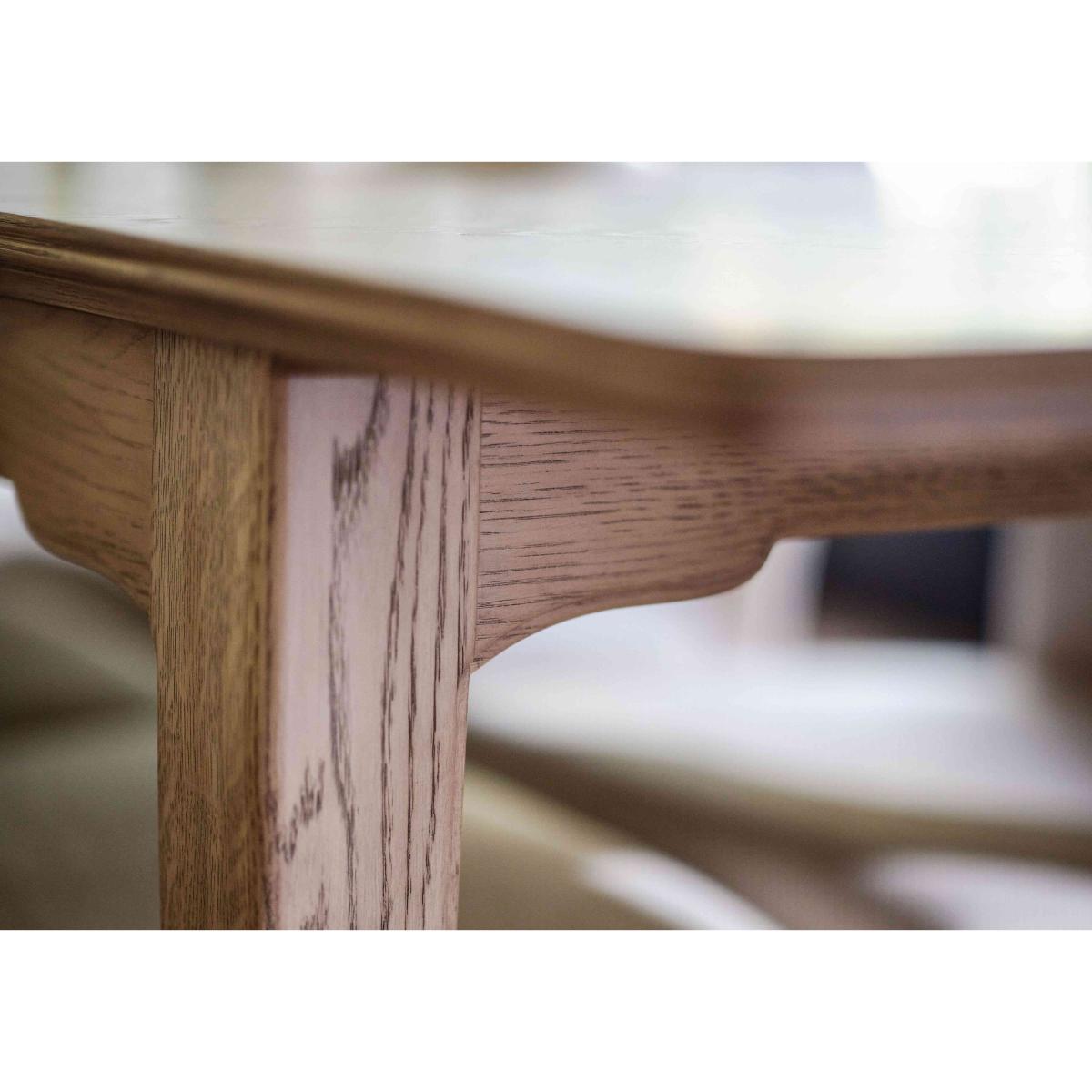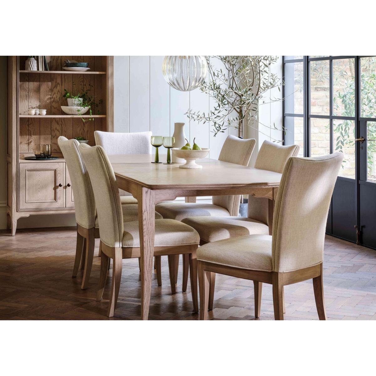 Classic French furniture is reimagined – quite beautifully – in the Willis and Gambier Toulon range. Handcrafted in solid oak, this collection includes pieces for bedrooms, living rooms and dining rooms and all showcase a wealth of wonderful and well-executed details. Superior cabinetry techniques that include carved profiles, beading, panelling and elegantly tapered legs quickly identify the collection as being handcrafted to the very highest standards, while the finishing touches – soft-closing drawers and cupboard doors and well-designed storage spaces, for example – speak to the range’s twenty-first century sensibilities. Eminently suitable for both traditional and contemporary homes, the Toulon range is, indeed, a modern classic. Simply beautiful. The solid oak Toulon extending dining table perfectly captures the essence – and the details – of classic French furniture. Why you'll love it Inspired by classic French furniture, the Toulon range brims with charm and style. This extending dining table showcases a wealth of refined details. The edge of the table top has 2 rows of beading. The apron has a beautifully carved profile. Elegant curved and tapered legs. Made of solid oak, carefully selected for its character and quality. Hand-finished with a white-hued lacquer for a timeless look. Seats up to 8 with a hidden extension leaf. Handcrafted by Willis & Gambier. This extending dining table is part of the Toulon range. What you need to know This extending dining table seats 6 and extends to seat 8. No two pieces of solid wood are the same. Variations in colour will occur. As wood is a natural product, you can expect to see knots which may be filled. Avoid placing in direct sunlight or close to a heat source. We recommend using coasters and placemats at all times. Wipe clean with a damp cloth and then dry using a soft duster. Do not use silicon-based furniture polish or abrasive cleaners.