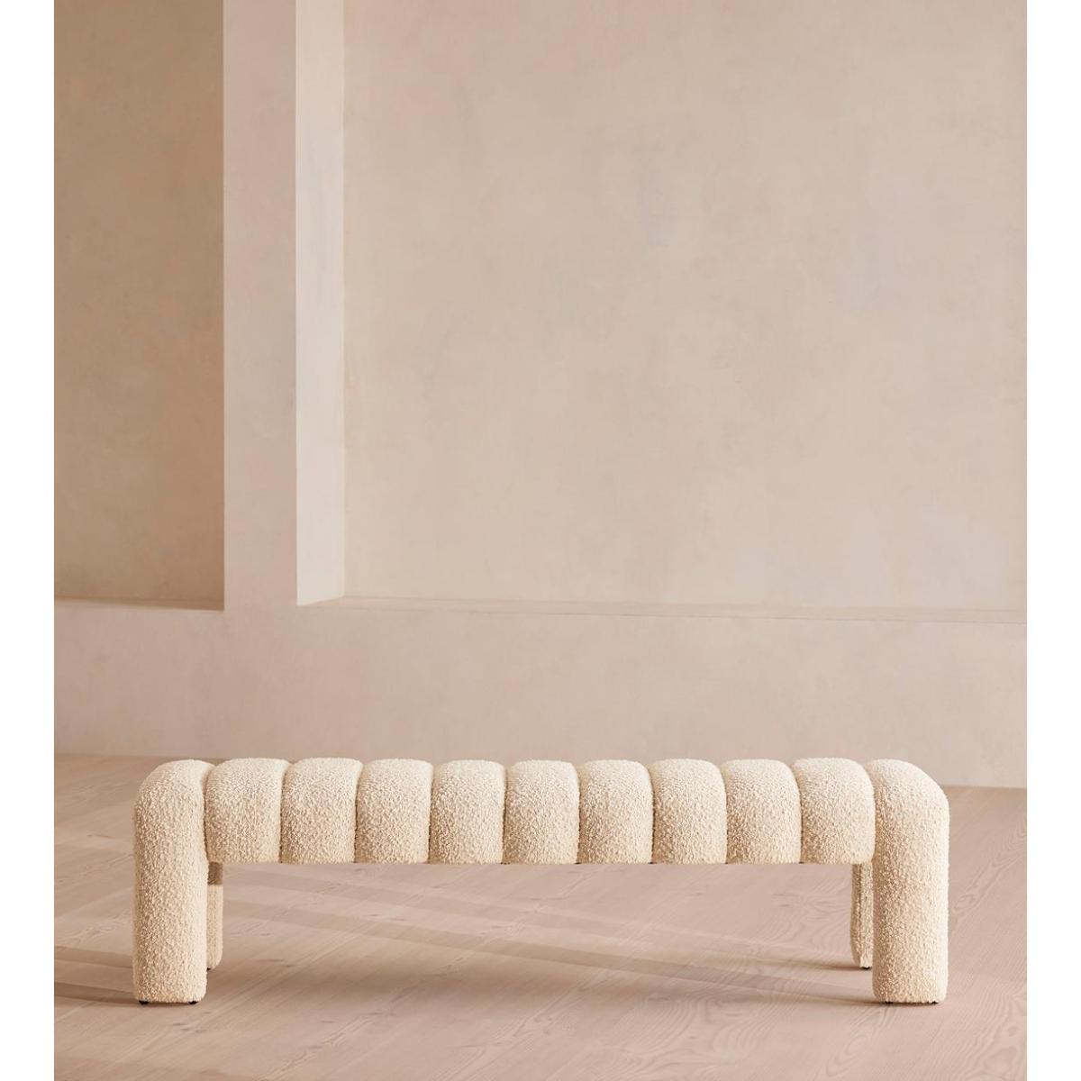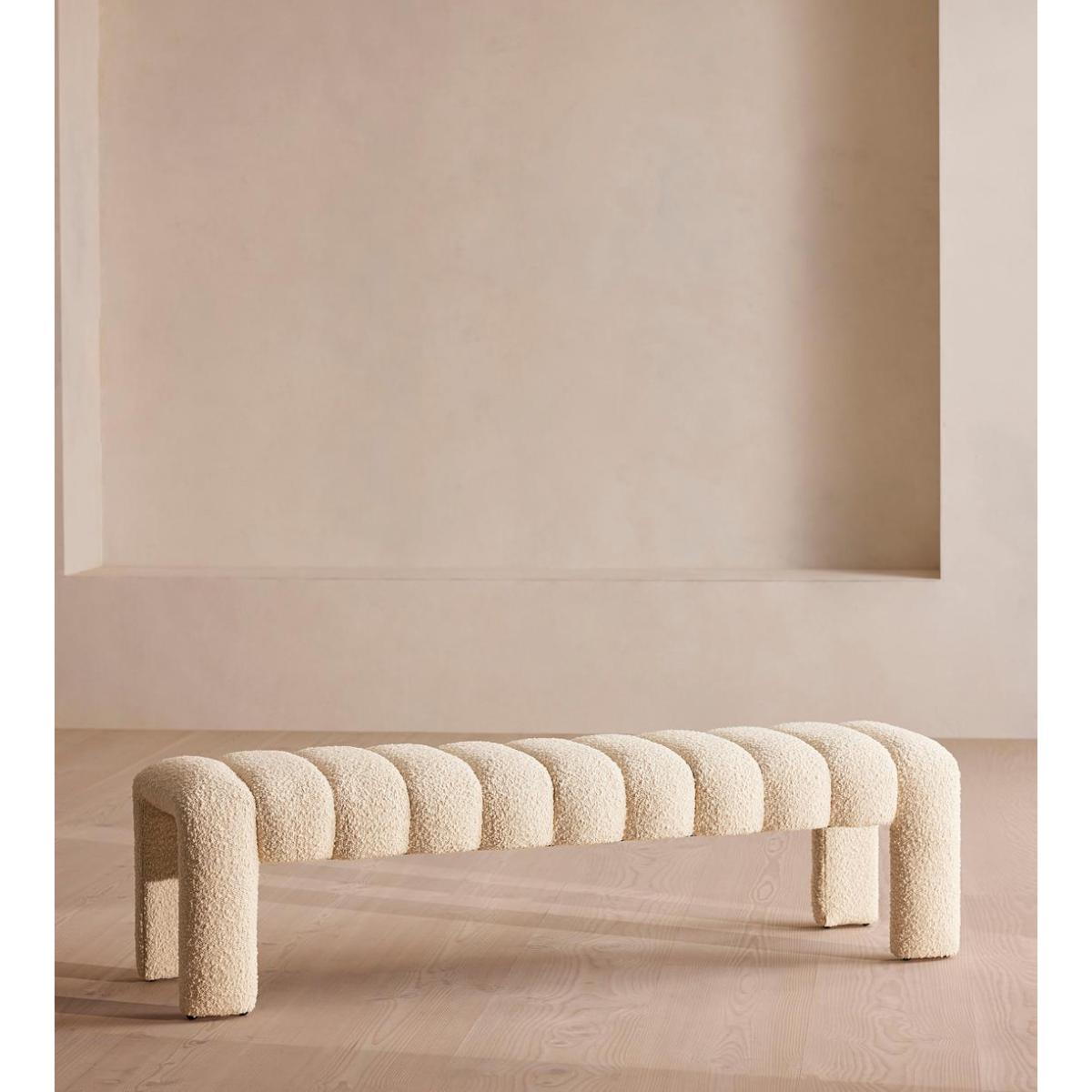 Our Willis bench adds a touch of vintage-inspired glamour to any interiors scheme with channelled seat detail and boucle upholstery for a textural finish. Inspired by Soho House Holloway, this piece is ideal for placing in an entrance, living room or at the end of the bed. Multi-functional bench Upholstered in boucle fabric Channelled seat detail Available in a range of colours Inspired by Soho House Holloway