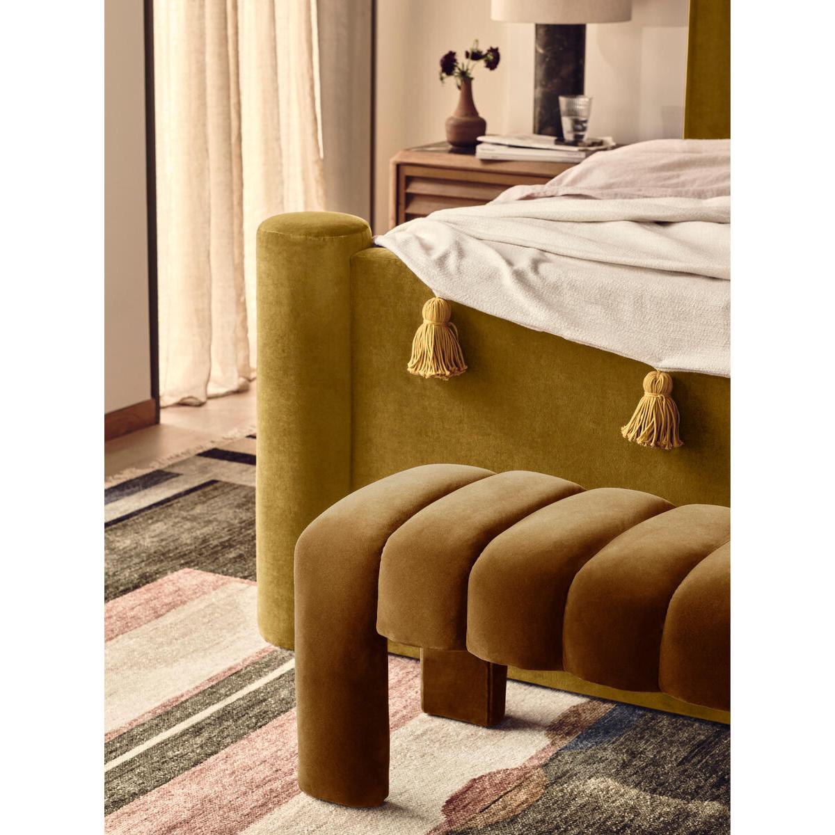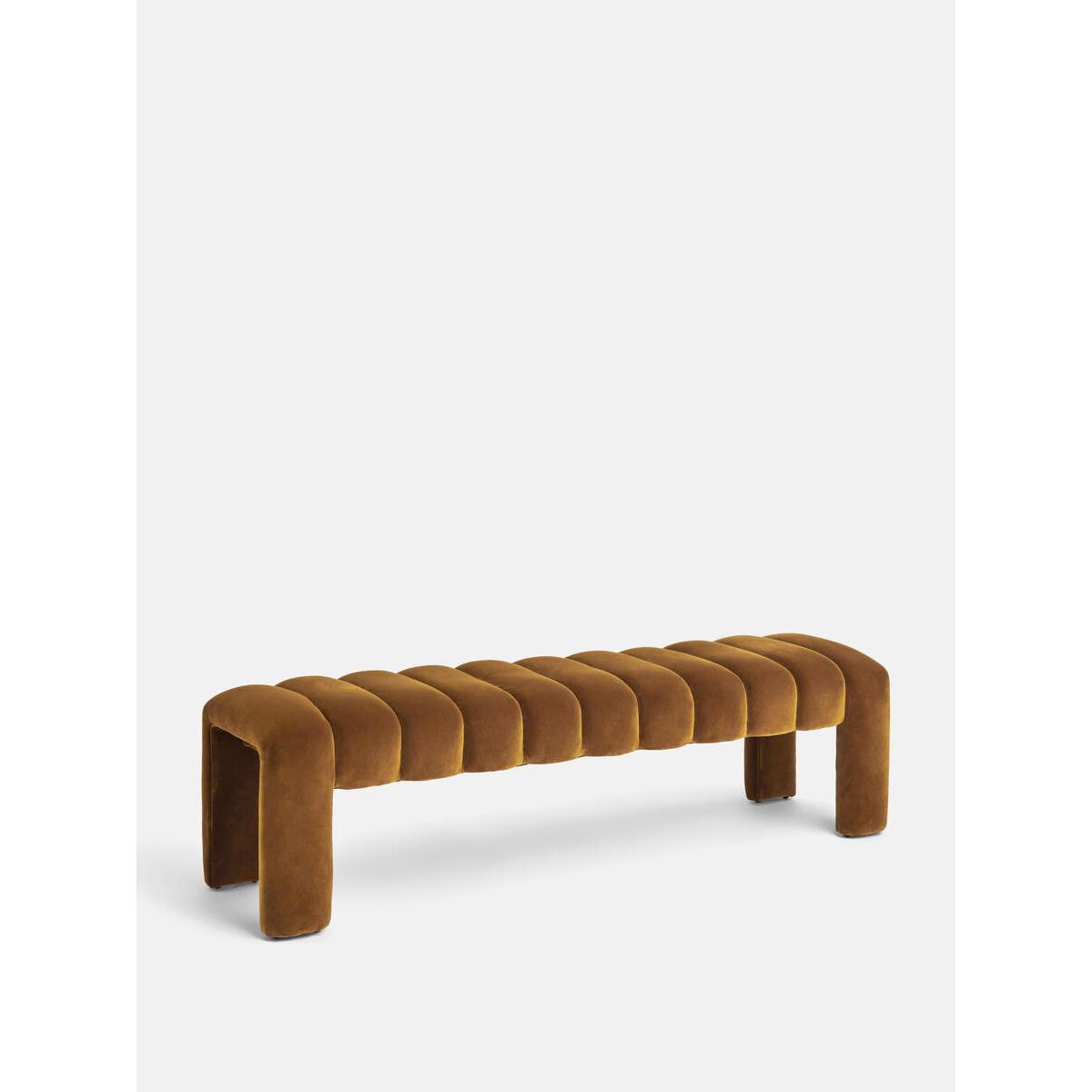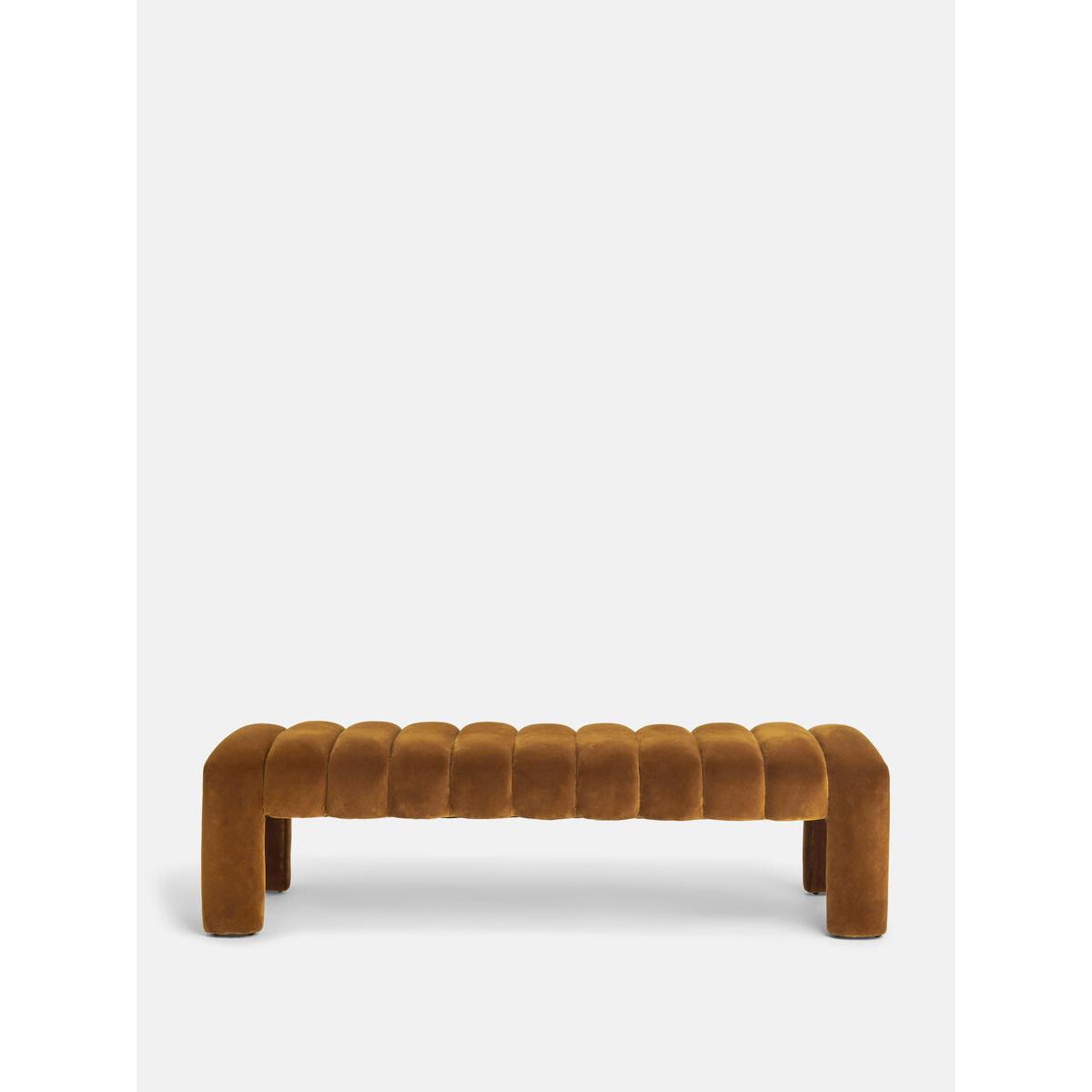 I’m a fan of this mustard velvet bench because its warm tone and soft texture instantly lift a scheme without overpowering it. Its rounded, low-profile shape suits contemporary, Scandi or mid-century interiors equally well, pairing neatly with neutral walls or deeper accent colours. Styling tip: position it at the foot of the bed or in a hallway under a slim console mirror, then layer a simple cushion or folded throw for comfort. Finish the look with a few metal accessories - think matte black candleholders or a brass tray - to balance the plush upholstery.