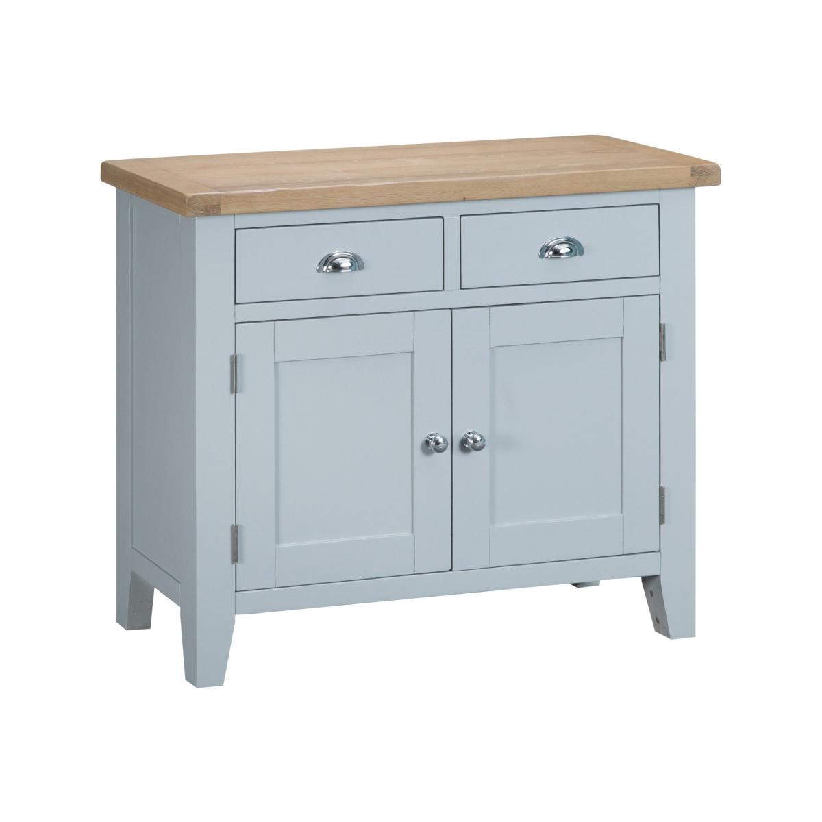 I love this sideboard for its versatile colour scheme and practical design. The mix of oak and grey lends itself well to both contemporary and traditional interiors, working particularly well in kitchens, dining rooms, or living spaces where a touch of understated elegance is desired. It’s a great choice for those looking to introduce a bit of natural warmth with the oak top while maintaining a clean, modern look with the grey finish. Practical styling tips include using the top surface for stylish storage or display of decorative bowls, vases or trays, while the drawers can accommodate cutlery or smaller items. Keep accessories minimal for a neat, organised feel, or add a few colourful accents to bring personality into your space.