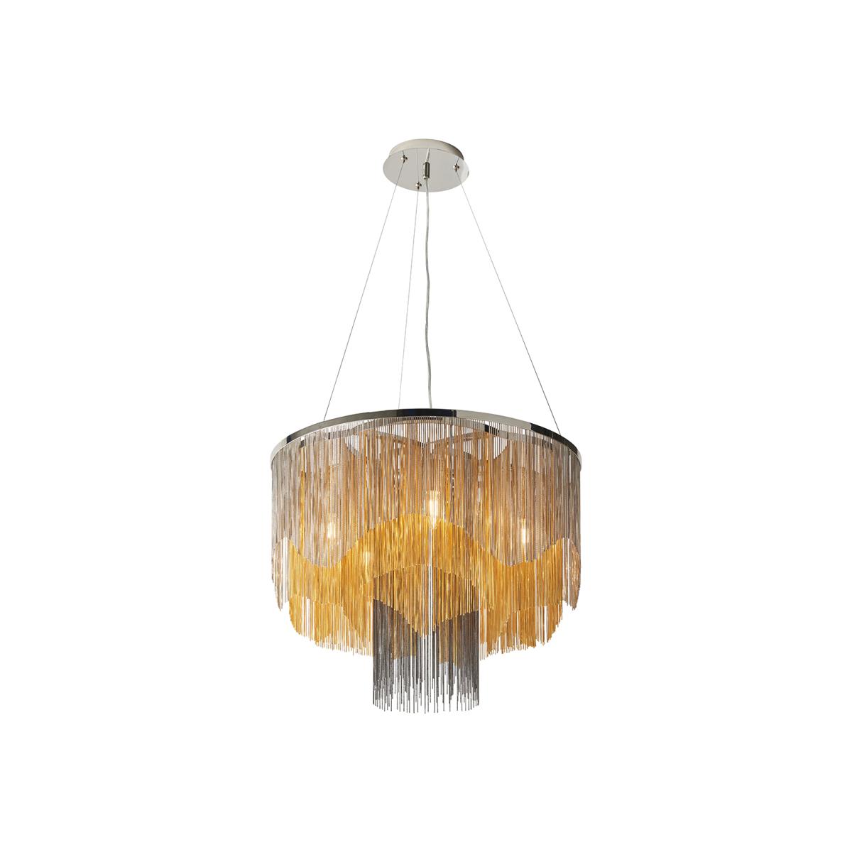 Elevate your room with a touch of luxury with the undeniably glamorous Willow pendant. Held together by a bright nickel frame, multi-coloured chains in bright nickel, gold and black cascade down the pendant.